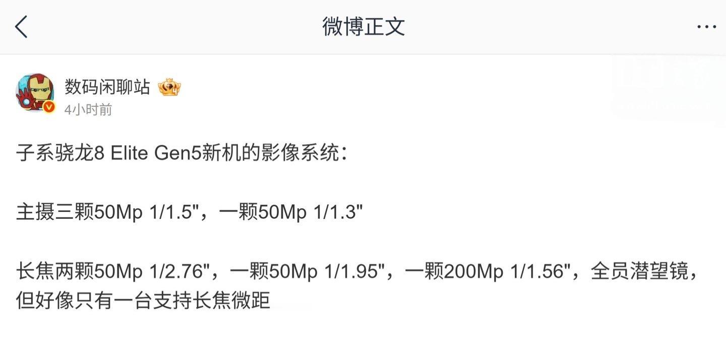 【多家厂商骁龙 8 Elite Gen 5 子系机后摄方案曝光:全系具备潜望镜,部分机型砍长焦微距】