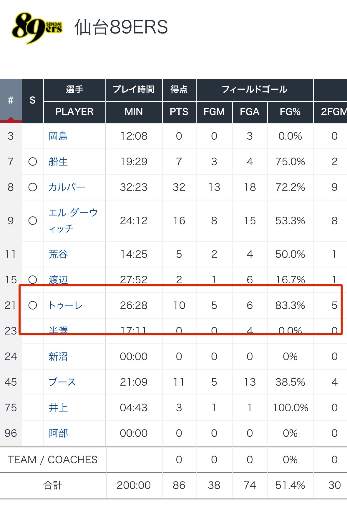 图雷所在的仙台89人取得新赛季首胜