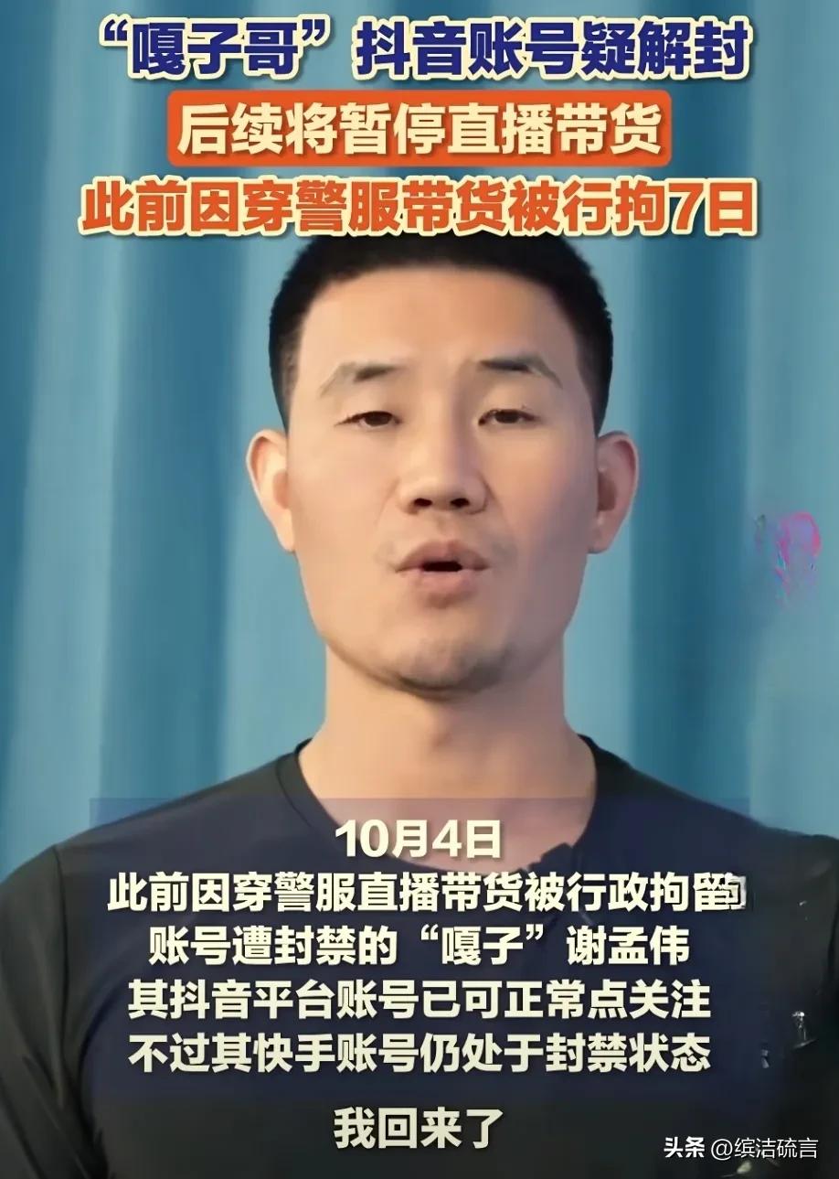 嘎子行政拘留结束了,并对观众进行了道歉,但是有几件事可以得到确切答案: 第一:嘎子抖音账号已经解封,目前是正常的。 第二:嘎子确实知道错了,发布抖音的语言和表情能看出来。 第三:目前嘎子公司还是正常经营,员工已经放国庆长假了。 第四:嘎子心里压力特大,说话的时候,没有以为那么轻松和自然,这次对嘎子事业受到影响肯定是非常大。 作为演员和明星这类公众人物,必须要严格要求自己一言一行,也是给嘎子人生上了一课,希望他经历这次后,真正让自己完全改变一下。嘎子谢孟伟 搞笑嘎子