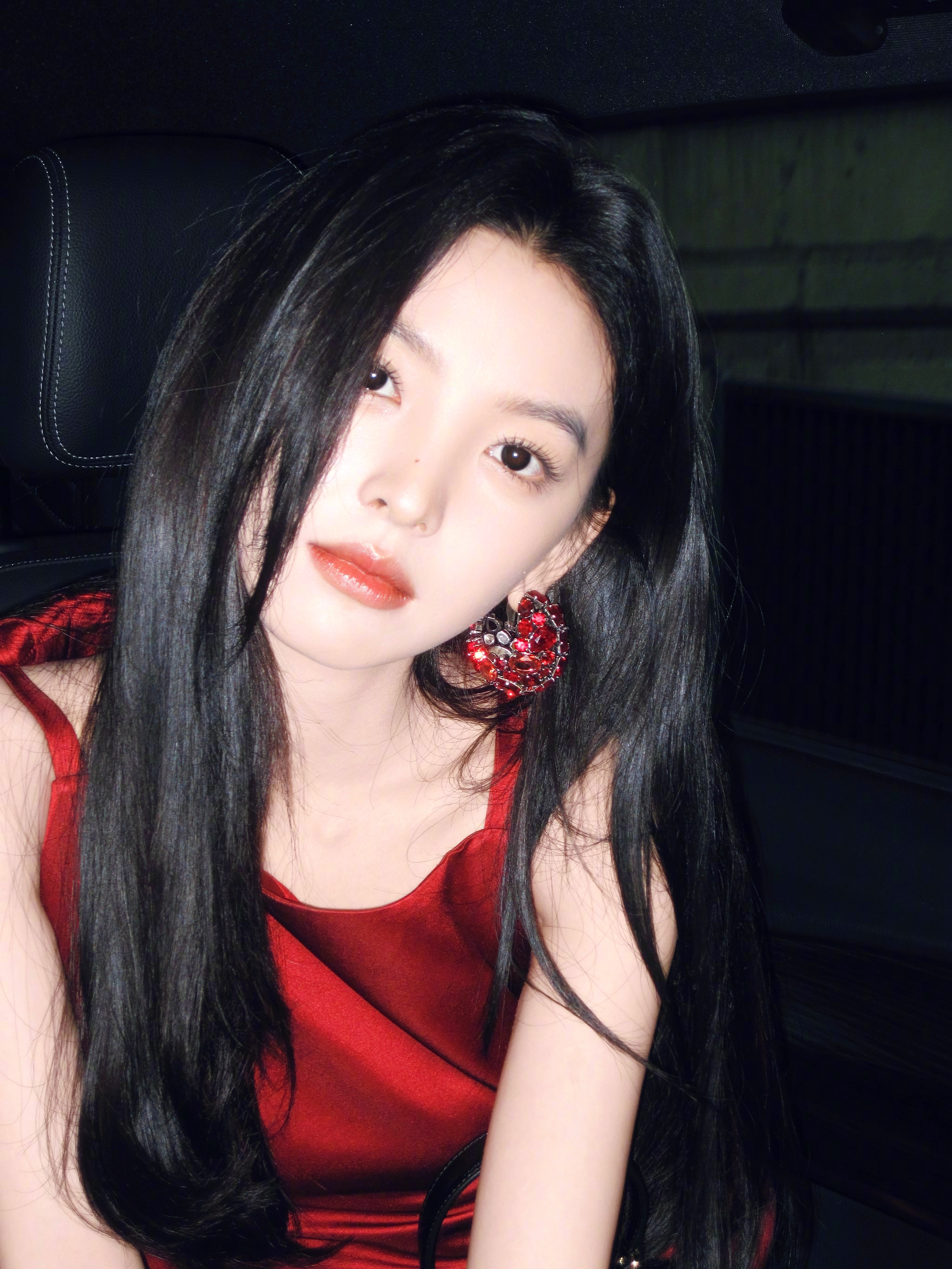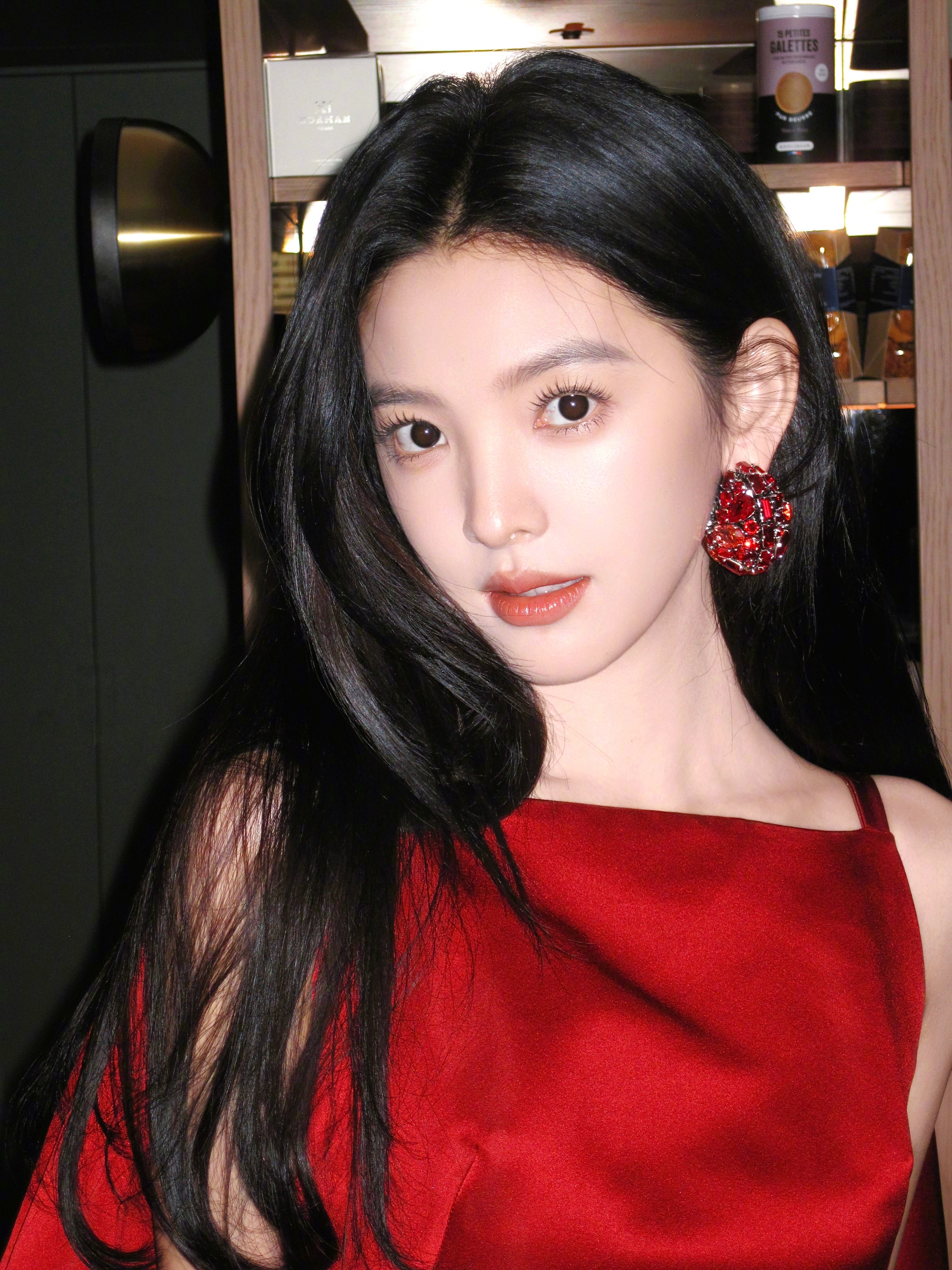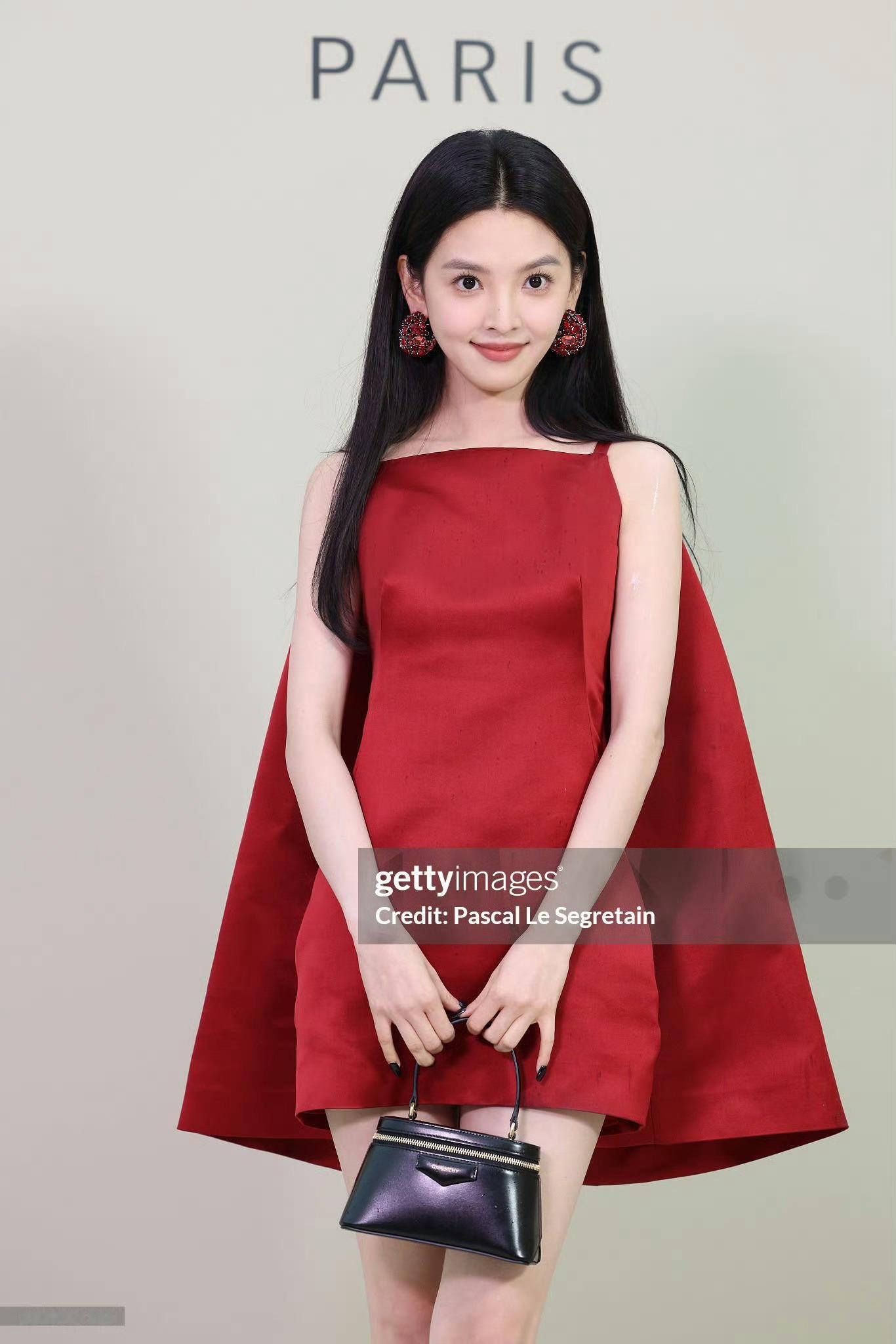 章若楠黑发红裙照巴黎时装周