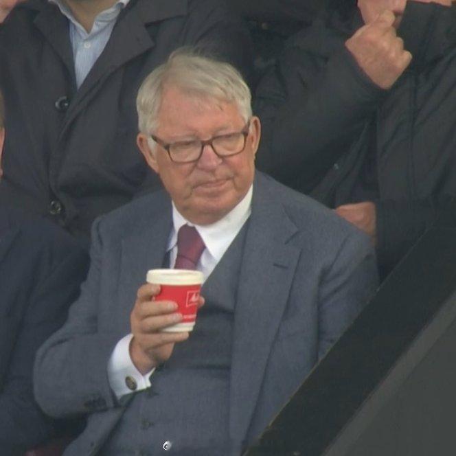 弗爵在喝咖啡[嘻嘻]曼联赞助咖啡品牌一直没换啊