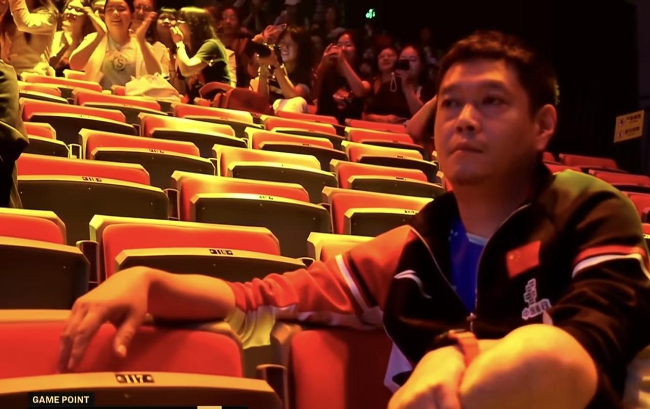 邱贻可指导坐在台下看莎莎的比赛 今天莎莎和陈幸同的比赛,邱指导也很关心的,虽说是