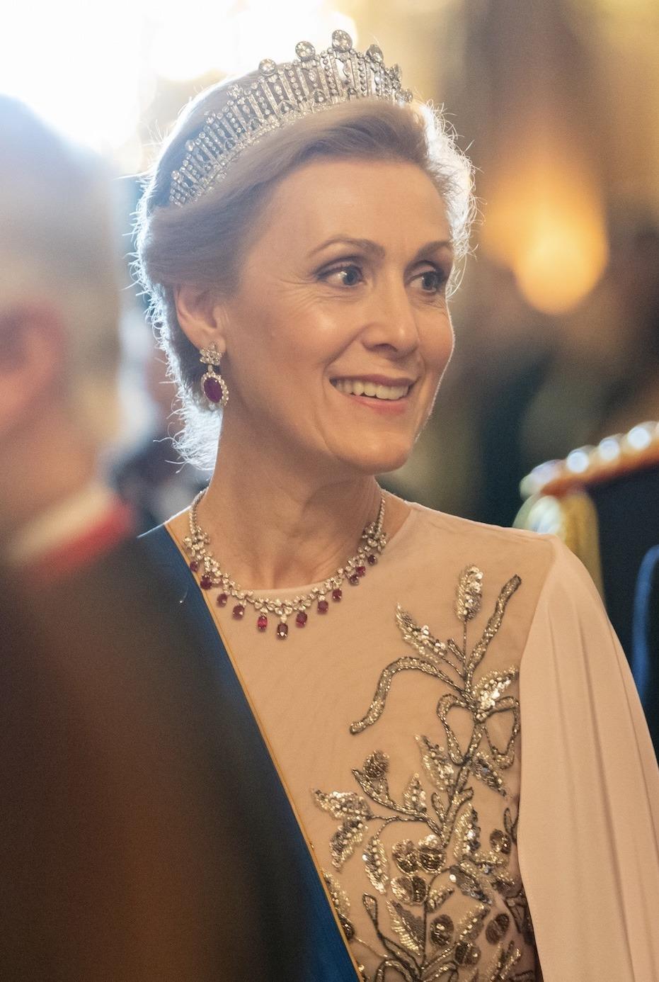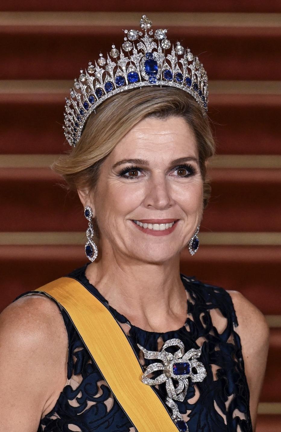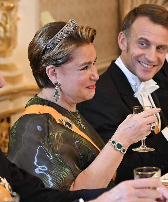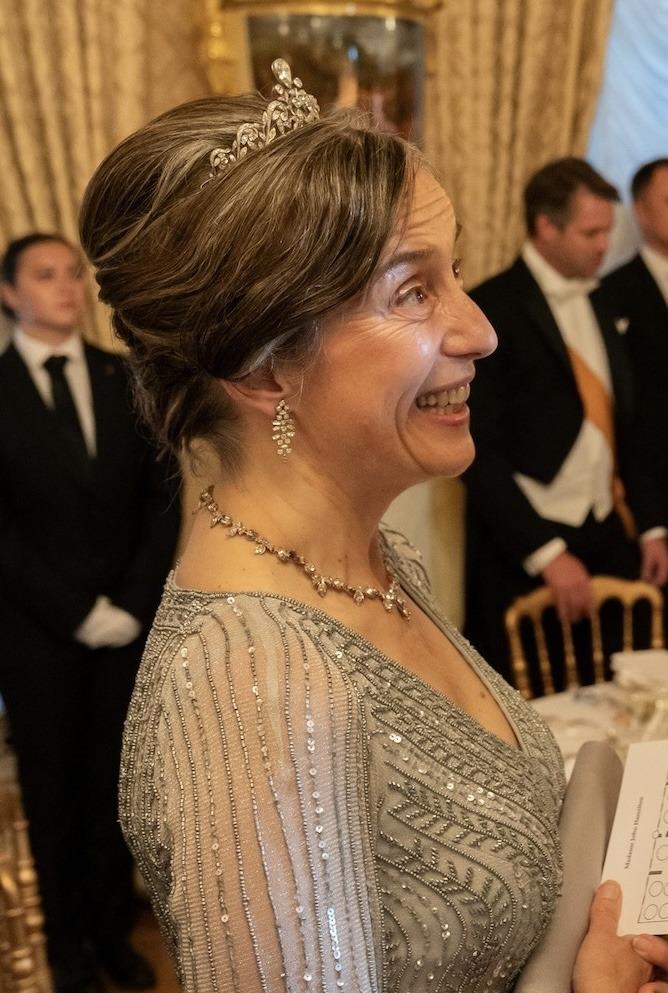 昨晚(10月3日),新即位的卢森堡大公纪尧姆五世和大公夫人斯蒂芬妮设宴接待来宾。这场宴会级别为最高的whtie tie,即女士需要穿着长礼服佩戴王冠(如有) 于是就该看些喜闻乐见的blingbling啦,看看王室女士们的王冠 图1:新任大公夫人斯蒂芬妮,佩戴太婆婆约瑟芬-夏洛特的嫁妆王冠,猜测应该用以致敬比利时(她比利时贵族小姐出身) 图2:刚退休的玛利亚-特蕾莎,退休后放下执念,佩戴卢森堡王室祖上的蓝宝石王冠 图3:卢森堡二王妃克莱尔,佩戴夏洛特女大公的尚美祖母绿王冠,也称“牛眼”,应该是全场最贵重的王冠了 图4:卢森堡西比拉王妃,佩戴嫁妆钻石王冠,她是纪尧姆的小婶,有西班牙王室血统 图5:比利时兰诺女伯爵娜塔莉,佩戴兰诺钻石王冠,她是斯蒂芬妮的大姐 图6:比利时王后玛蒂尔德,佩戴九省王冠(底座) 图7:比利时王储伊丽莎白,佩戴成年王冠 图8:荷兰玛克西玛王后,佩戴荷兰王室的大蓝宝石王冠 图9:荷兰王储阿玛利亚,佩戴艾玛王后的钻石王冠(全钻版)