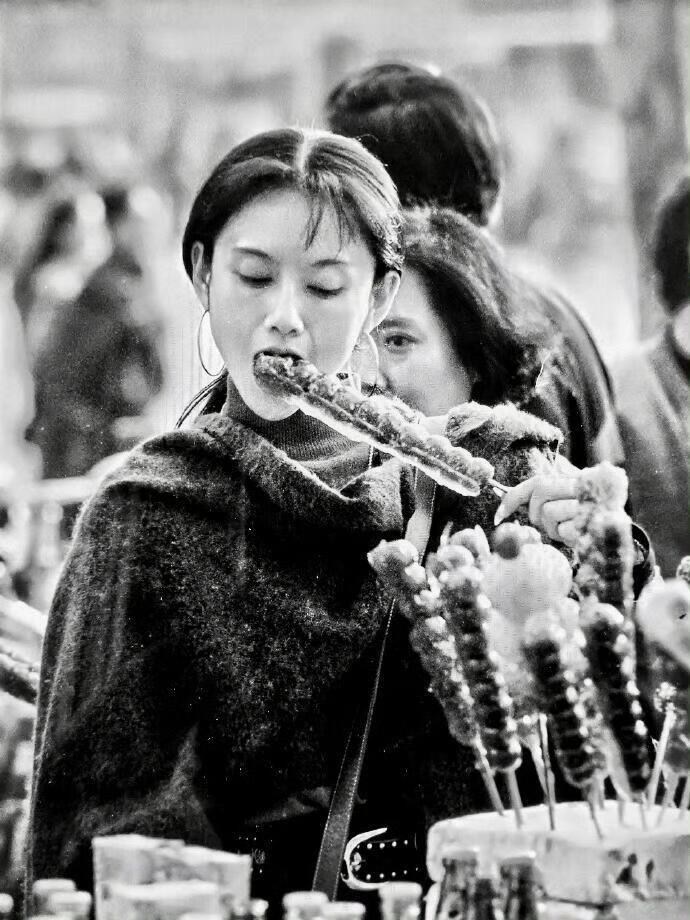 34岁杨丽萍92年济南旧照曝光,市集啃糖葫芦的美,和身边路人不在一个次元~~