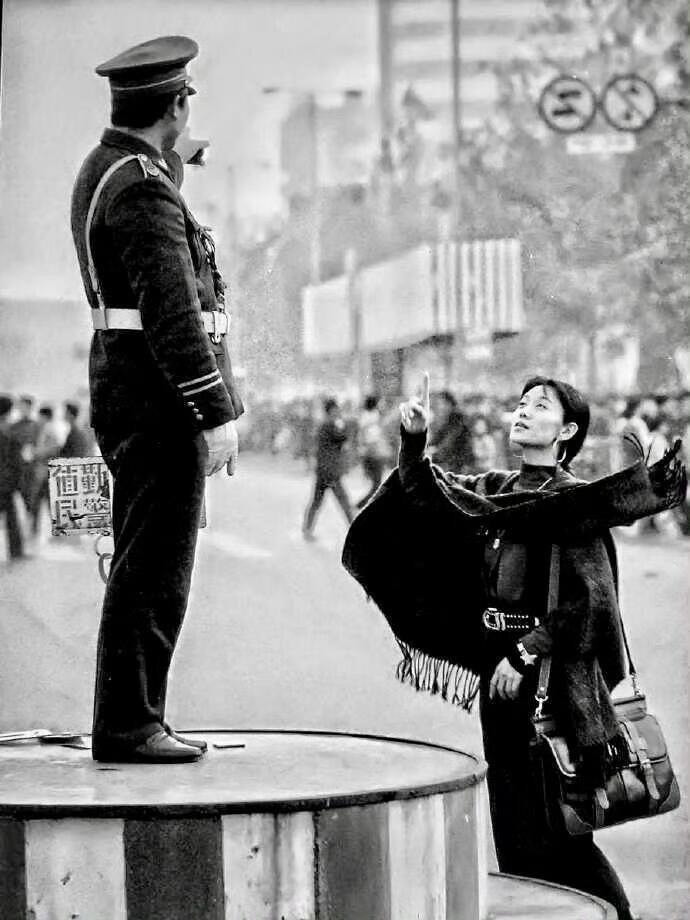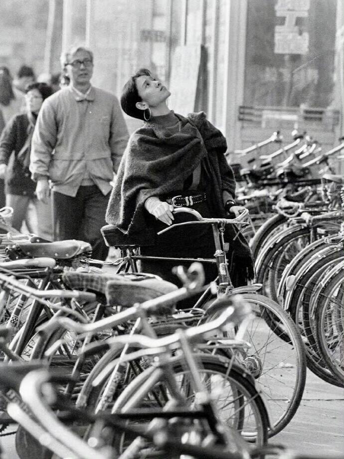 34岁杨丽萍92年济南旧照曝光,市集啃糖葫芦的美,和身边路人不在一个次元~~ 最近翻出杨丽萍1992年在济南的这组老照片,真的被击中了。34岁的她穿着深色披肩,耳朵上晃着大圆环,在喧闹集市举着糖葫芦,身后是推着自行车的人群、老墙广告牌。可偏偏她闭眼微笑的那个瞬间,整个画面像分了层——市井烟火是背景,而她自带艺术家的疏离感。 没有滤镜的年代,黑白色调反而衬出她骨子里的轻盈。骑自行车、站街边、看报纸的路人从她身边流过,她却像活在另一个频率里。原来30+的女生,真的可以把日子过成诗。 杨丽萍 杨丽萍舞剧