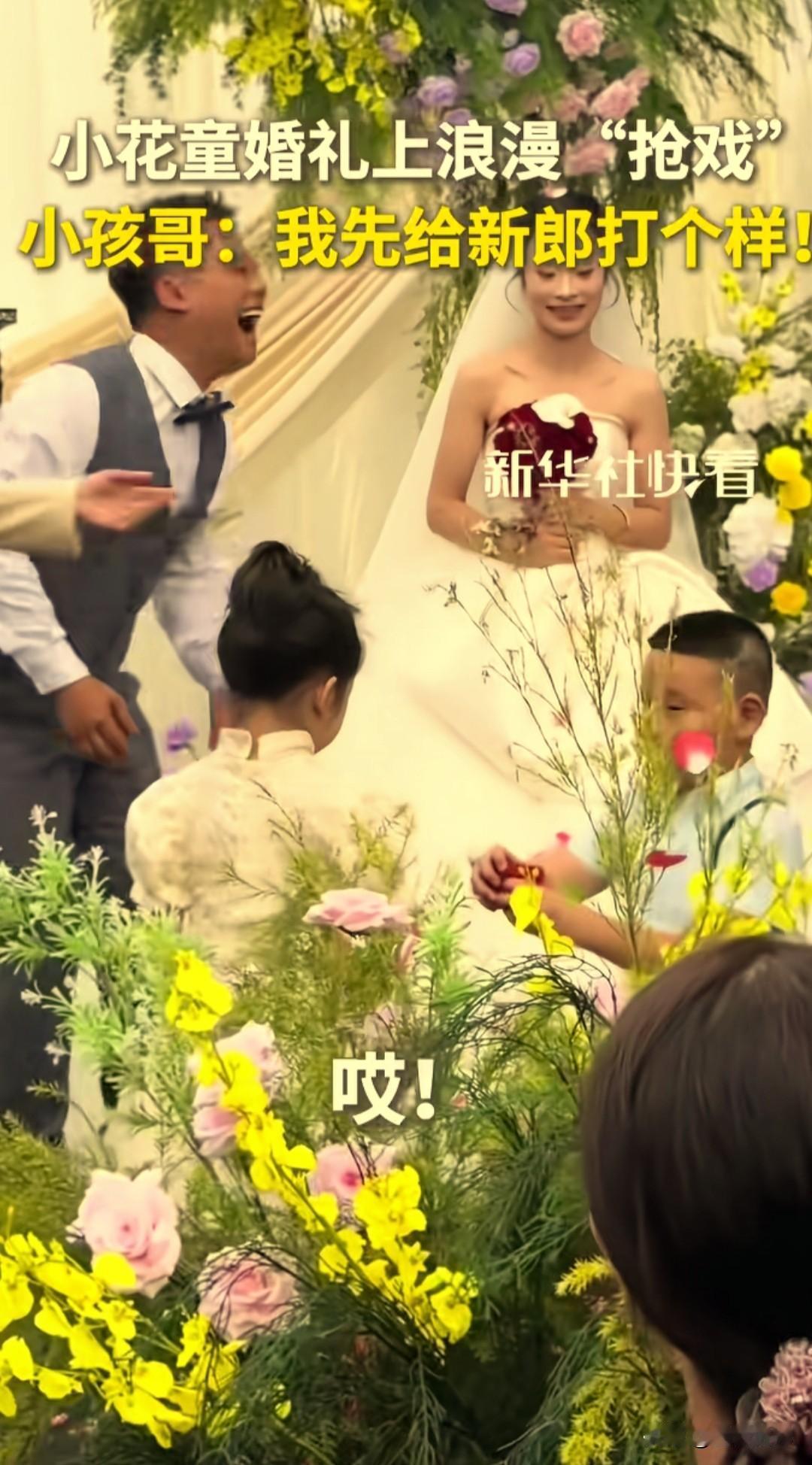 这个小孩哥太有出息了吧,10月 3日在贵州,一对新人结婚。 举办婚礼的时候,司仪让一对小花童入场,让把戒指盒打开。 结果结果小男孩直接把戒指盒打开,面向小女孩,单膝跪地。 网友评论道: 小男孩:花别人钱,办自己的事 新郎:坏了,我成伴郎了。 小孩哥:第一杯敬自己,五岁时候差点求婚成功。 多年后,男孩婚礼上, 新娘:你动作为啥如此熟练 男孩:十几年前我就教学过上一个新郎。 来源:新华社