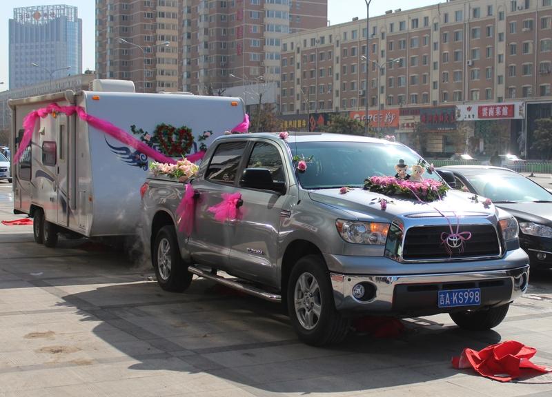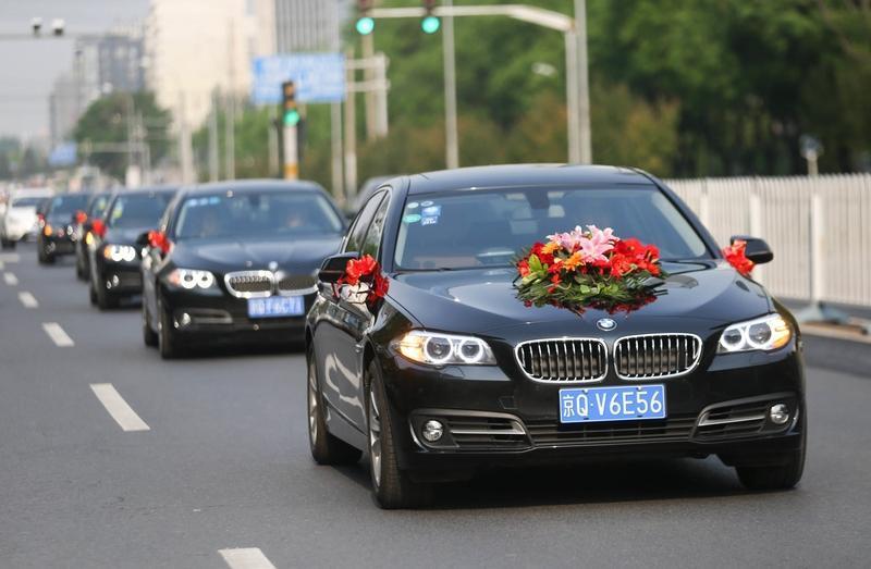 红白事路口相逢红布相隔婚车先行红白事上门宴席 10月4日河南焦作有个事儿挺有意思