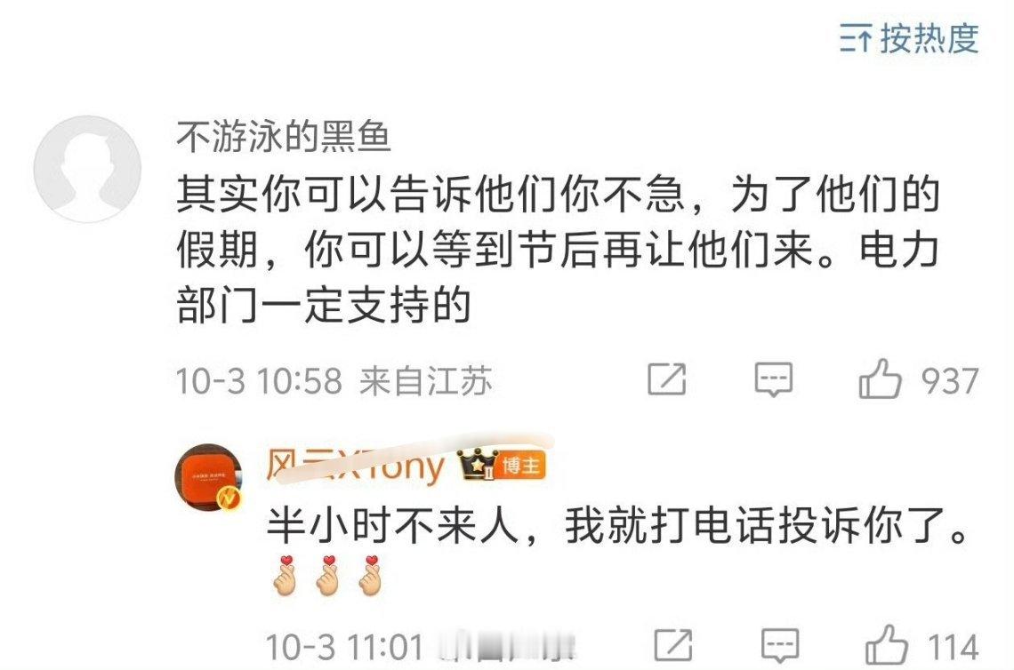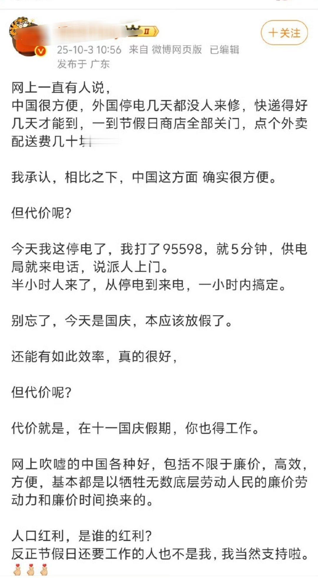 很难想象这居然是一个接近200万的博主发出的言论,享受着国庆期间专人服务的便利,转头就吐槽劳动力廉价,网友建议等假期结束再办事,他居然说迟半小时就投诉,双标玩明白了属于是。