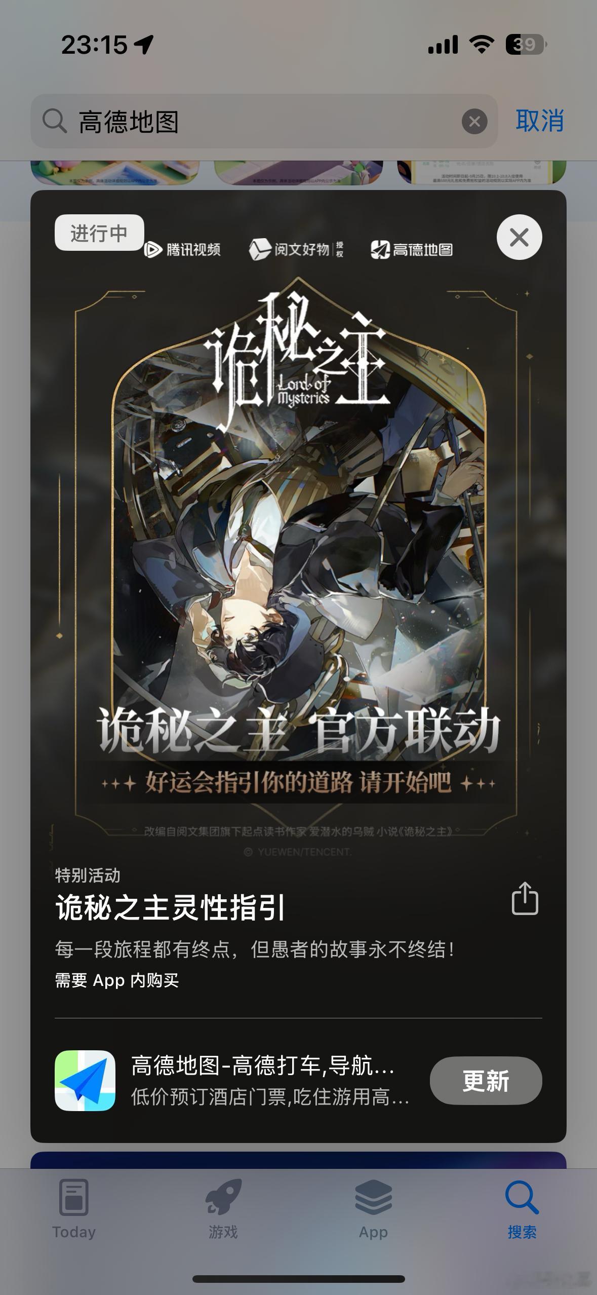 woc!本来想更新一下高德地图,看看那个扫街榜,结果更新页面显示和我最喜欢的网文诡秘之主联动了!!