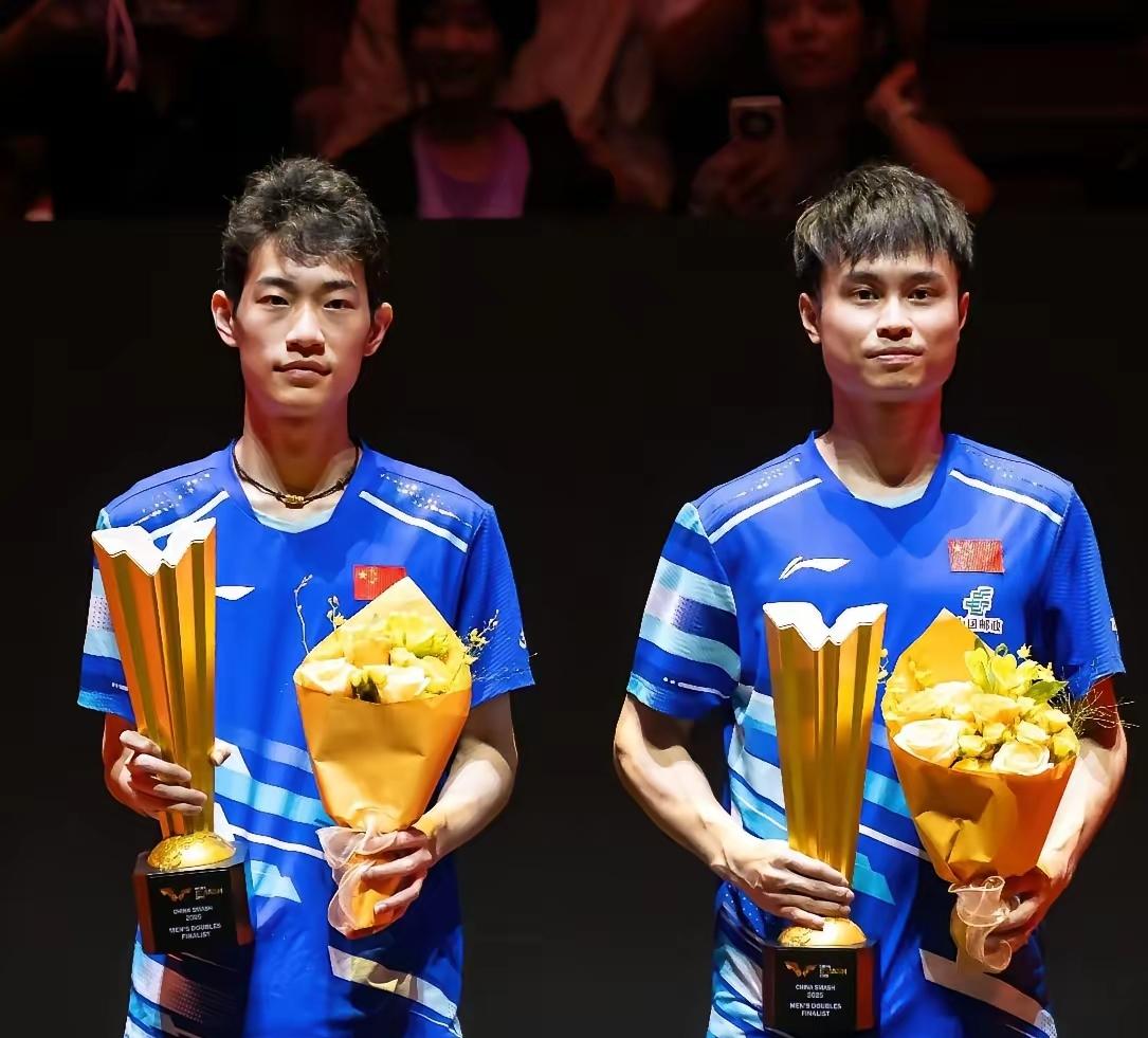 周启豪和陈俊菘首配就拿了男双亚军,挺厉害的。虽说被横扫,但三局比分不算悬殊,第一局8-11,后两局也咬得紧。 陈俊菘今天回抛被挑战,40多度的角度逗笑了周启豪。小将有冲劲但不够细致,周启豪再给力也难带俩。不过陈俊菘算大满贯小黑马,和高手过招长经验,多给机会准能打出来。周启豪也圈粉无数,继续加油! 图片来自网络侵权可删。