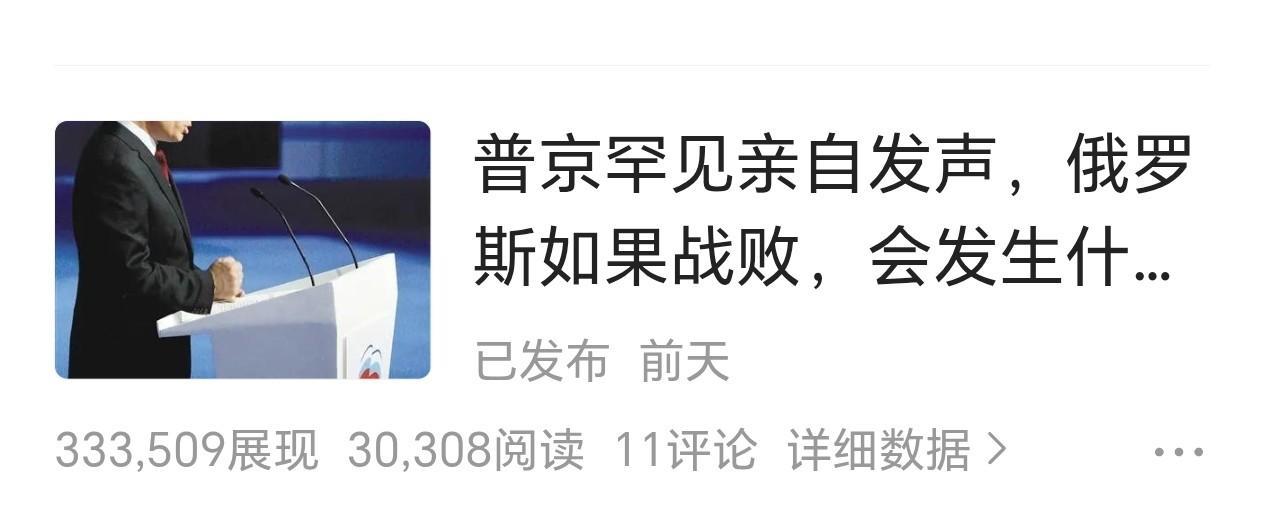 其中一篇“小爆”,三篇“哑火”,不知何故。 “小爆”写的是《普京罕见发声,俄罗斯如果战败,将会发生什么?》, 自我感觉一般,没想到能成小爆款; 三篇“哑火”中,我最满意的是:《特朗普竞选和上任后对俄乌冲突表态变化无常没原因》, 以为肯定能爆,起码是“小爆款”。结果仅仅17个阅读量。 家长里短的水文, 给展现十几万,阅读量好几万; 真正的有理论、有实际、有写作水平的文章, 却一文不值。 真让人想不通! 另外,上万阅读量的不到2元钱,千字文给5元钱以上, 这是什么标准? 随心所欲,随便给吗? 还有让人不解的是: 经反馈给客服中心申诉后, 延迟10多小时才给予纠正。 理由竟是:审核延迟! 友友们,你们碰到过这种情况吗?怎样应对好呢?请教!