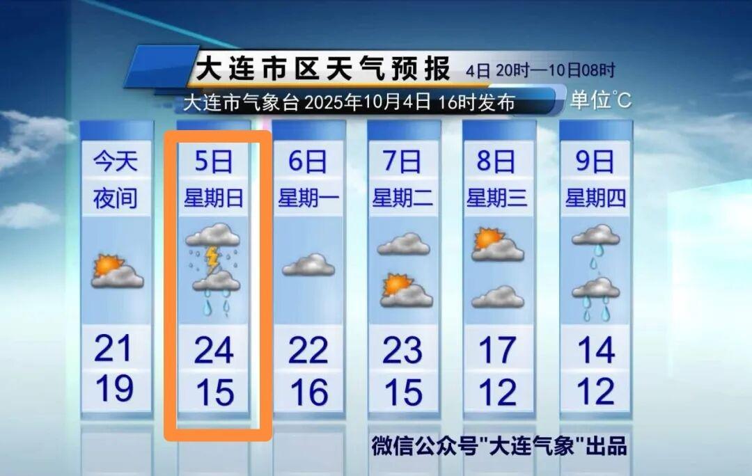 雨水+大风+降温! 昨天出去溜达一圈儿, 天下着小雨, 感觉到闷热, 以后几天天气降温不小! 今天5号周日多云天气,有雾, 局部有阵雨或雷阵雨, 气温15~24度 傍偏北风4~5转5~6级。 6日中秋节,大雾, 有阵雨或雷阵雨, 气温16~22度。 7日天空阴沉, 气温15~23度, 东北风力阵风可达7级。 8日假期最后一天, 雨水短暂停歇, 东北大风不小, 气温12~17度。 冷空气、大风、降雨将再次来袭,气温断崖式下降至12度 朋友们一定要注意添衣保暖,谨防感冒。