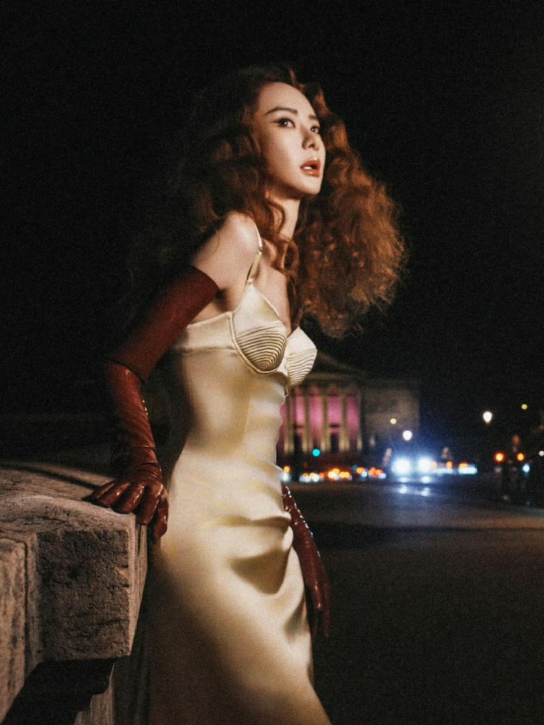 戚薇G社好离谱戚薇的脸巴黎时装周Mugler秀场,戚薇身着金色吊带长裙搭配酒