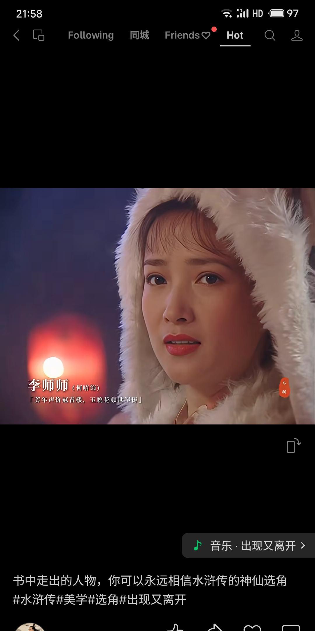 98版央视《水浒传》对女性角色的选角精准传神,表演细腻深刻。王思懿饰演的潘金莲,将角色的风情与悲剧性交织得极具层次;何晴的李师师,才情与气节并重,风华绝代;梁丽的孙二娘、郑爽的扈三娘等,亦将草莽巾帼的豪爽与英气演绎得鲜活立体。整体上,演员们不仅形似,更深入角色内心,成就了古典女性群像的荧屏经典。