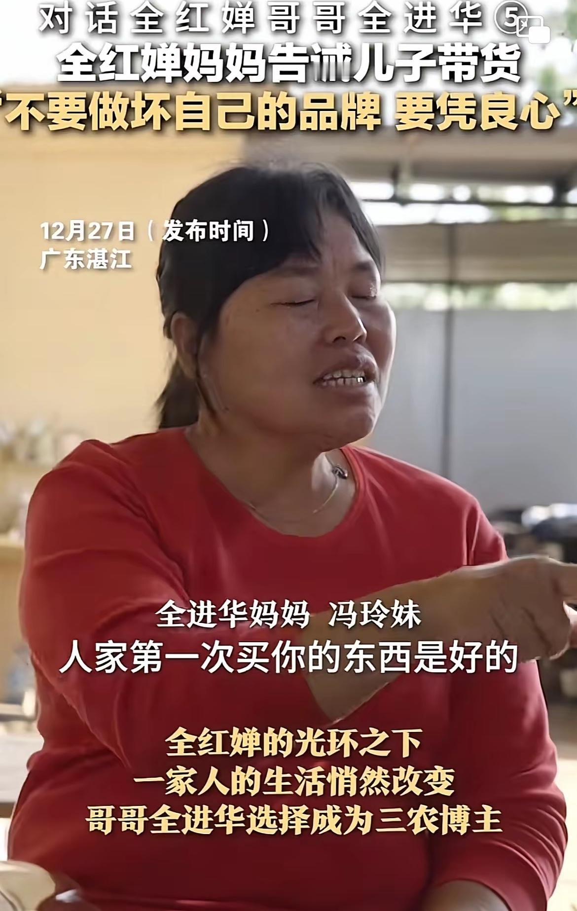 全红婵妈妈骂自己的儿子全进华,不要以为自己现在名气大了,粉丝多了就开始带货,人家第一次买你的东西是好的,就会回来在买,要是卖那些坏的给人家,人家就不会在买,也影响到女儿的名声。 谁都知道,全妈妈这辈子没享过什么福,以前在广东湛江的农村种地,天不亮就起来摘菜、喂猪,全红婵练跳水那几年,她还在夜市摆过地摊卖拖鞋,一双赚两块钱,就为了给女儿凑训练费。那时候全家最苦的日子,她都没跟人红过脸,现在却为了儿子带货的事动了火,不是小气,是她太清楚“名声”俩字有多金贵——全红婵从7岁进体校,每天跳几百次水,肩膀贴满肌效贴,手练得全是茧子,才换来“水花消失术”的名声,这哪是能靠带货随便折腾的? 听说全进华刚开始带货时,全妈妈是不知道的,还是邻居阿姨拿着手机给她看:“你家进华在卖零食呢,评论里都说是全红婵的哥哥。”她凑着屏幕看了半天,没先夸热闹,反而皱着眉问“这东西你吃过没?质量靠谱不?”后来真有人在评论里说“买的饼干有点潮”,她当天就打电话给全进华,语气急得都带了颤音:“你是不是疯了?人家买你的东西,是看婵婵的面子,你拿不好的东西糊弄人,不是打婵婵的脸吗?” 全妈妈不是反对儿子赚钱,她知道全进华以前也不容易,在工厂打过长工,也开过网约车,没沾过妹妹的光。可她总跟孩子们说“钱要赚干净的,别沾着别人的光耍小聪明”。有次全红婵拿了冠军,有人找全进华做代言,给的钱不少,全妈妈知道后直接拦了:“人家找你,是因为你是婵婵的哥哥,不是你自己有本事,这钱拿着不踏实。”那时候全进华还不服气,觉得妈妈太固执,直到这次有人吐槽买到劣质货,他才懂妈妈的心思——粉丝捧的不是他,是“全红婵家人”这层身份,一旦砸了,连妹妹的口碑都得受牵连。 更让全妈妈揪心的是,全红婵每次回家,都跟哥哥说“哥,你要是想做事,我帮你找个正经活儿,别搞那些花里胡哨的”。孩子心里清楚,自己的成绩是练出来的,不是用来给家人带货的噱头。全妈妈看在眼里,更舍不得让儿子毁了这份纯粹——她见过女儿训练累到在泳池边睡着,见过女儿因为动作没做好躲在角落里哭,这些苦换回来的名声,怎么能因为几单带货生意就没了? 有人说全妈妈“管得太宽”,现在明星家人带货很常见。可她不管这些,只认一个理:“好名声是攒出来的,不是耗出来的。人家买一次不好的东西,下次就不信你了,连带着也不待见婵婵,这损失多少钱都补不回来。”她甚至跟全进华说,要是真想吃这碗饭,就先把东西的质量把好关,自己先试吃、试用,没问题了再卖,要是做不到,就老老实实找份工作,别想着靠妹妹的名气走捷径。 说到底,全妈妈的骂,藏的是最实在的清醒。她没读过多少书,不懂什么“流量密码”,却知道“做人要本分”,知道女儿的名声是靠血汗堆的,容不得半点马虎。比起赚快钱,她更怕的是,儿子把“全红婵家人”这个身份,从让人尊敬的标签,变成让人反感的噱头。 各位读者你们怎么看?欢迎在评论区讨论。