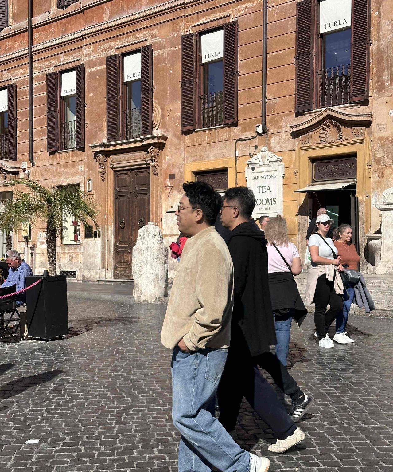 近日,网友在罗马西班牙阶梯偶遇黄渤和马岩松拍节目,黄渤身穿卡其色夹克配破洞牛仔裤,墨镜遮面超悠闲。现场人群熙攘,身边竟然还有马岩松低调同行。不过他俩怎么走在一起了呢,难道马岩松是要给黄渤设计豪宅吗[大笑][大笑]