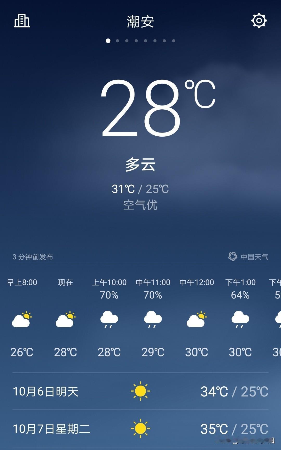 今年第21号台风“麦德姆”(强台风级) 今天(5日)中午掠过海南文昌近海后在雷州半岛登陆, 广东进入防风防汛临战状态。 另外, 第22号台风“夏浪”生成! 台风“夏浪”已于今天(5日)凌晨在西北太平洋洋面上生成。 海面又是双台风共舞情景, 从前是罕见, 今年倒成了常见! 今天(5日), 潮州喜提一个雷阵雨转晴天气, 气温25~31℃, 此刻气温28℃。 昨天下午开始, 潮州也刮起了大风, 昨天夜里风雨来袭, 偶尔雨势还挺猛烈的, 幸好持续时间不长。 风雨交加的夜晚, 总是睡得不踏实, 听风又听雨…… 今天起来发现, 依然是阳光灿烂, 只是云量明显增多。 看来, 今天得防风又防雨啊! 随着台风的靠近, 风和雨都来了, 今天的气温明显下降了, 而且还有大风, 凉爽了许多。 今天的天气, 应该给个好评吧! 如此天气! 元芳,你怎么看?