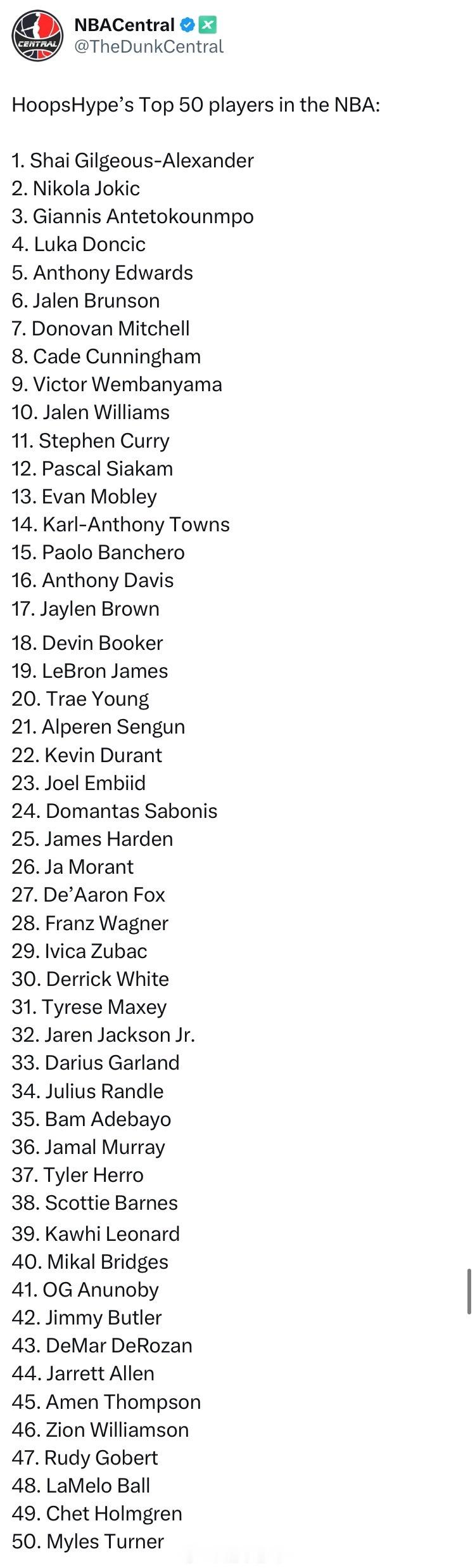 HoopsHype Top 50[二哈][二哈][二哈]杜兰特仅排22,火箭另外2个,申京21,阿门45