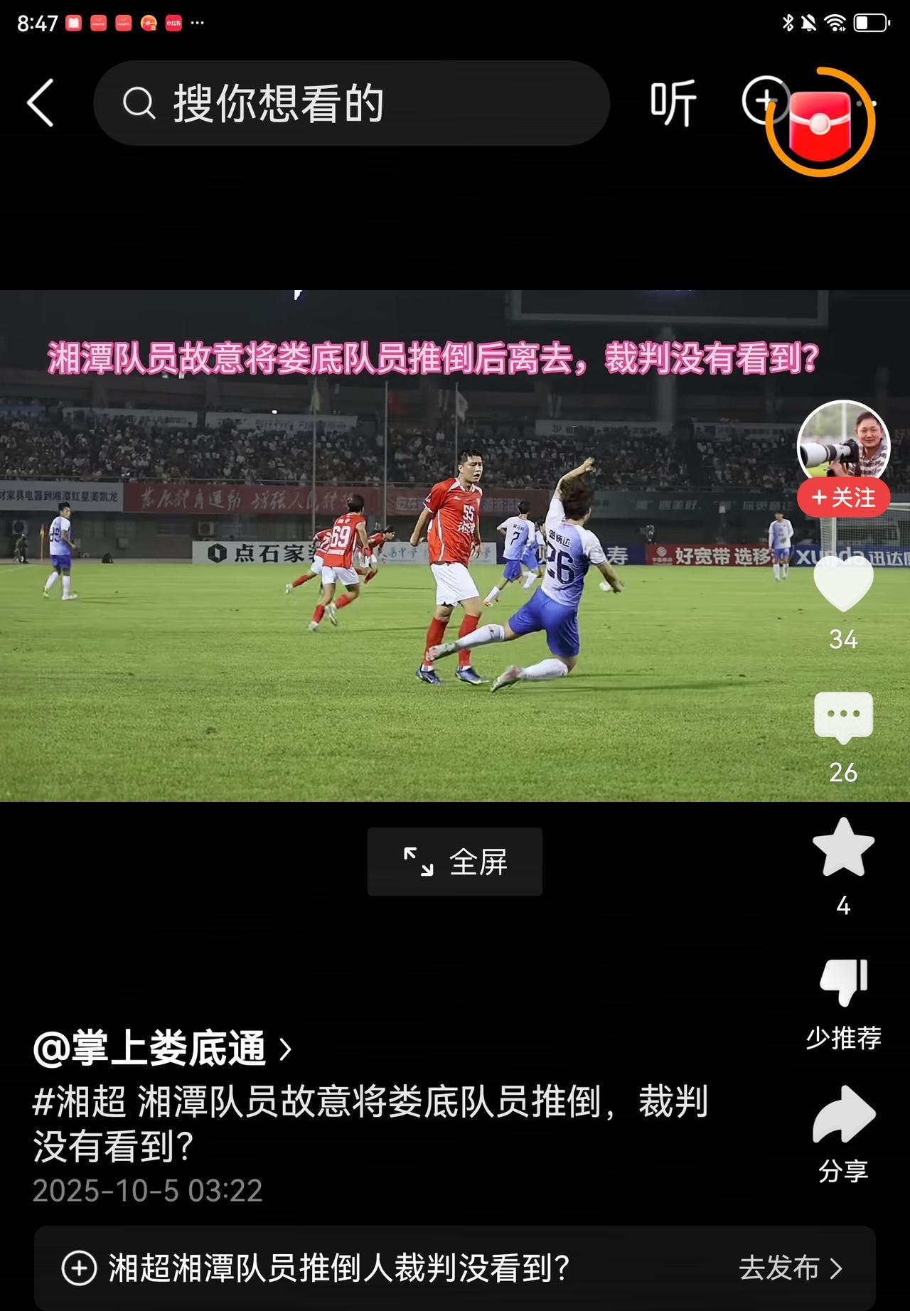 湘潭队是输球又输人! 难怪长株潭一体化的同胞兄弟长沙和株洲队,都瞧不上他湘潭队,见一次打一次,客场作战的娄底队连可有可无的点球都认了,恶意拉扯人的小动作也算了,却一味仗着主场行不义之举,终于激起了娄底队员和球迷的愤怒,唯有用行动硬刚到底,果然在第72分钟和最后时刻,在湘潭队脸上重重地刮了两巴掌,给算是给他们的55号长点记性。 当比分1:1被追平,输了面子的湘潭队员已然把友谊第一抛之脑后,其55号队员公然大庭广众之下连续推搡娄底队26号,直至轰然倒地,然后扬长而去,裁判没顾上这么多,其55号的行为简直跟湘西队7号的野蛮行径如出一辙,理应被判罚并清离出湘超比赛队伍中,以免一粒老鼠屎,搅坏湘超一大锅热滋滋的汤,唉,既然湘潭队输不起,又玩什么湘超呢?