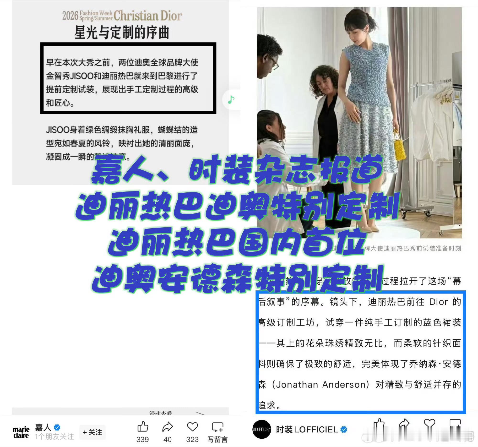 嘉人 时装报道,迪丽热巴迪奥特别定制国内首位[奶牛猫]