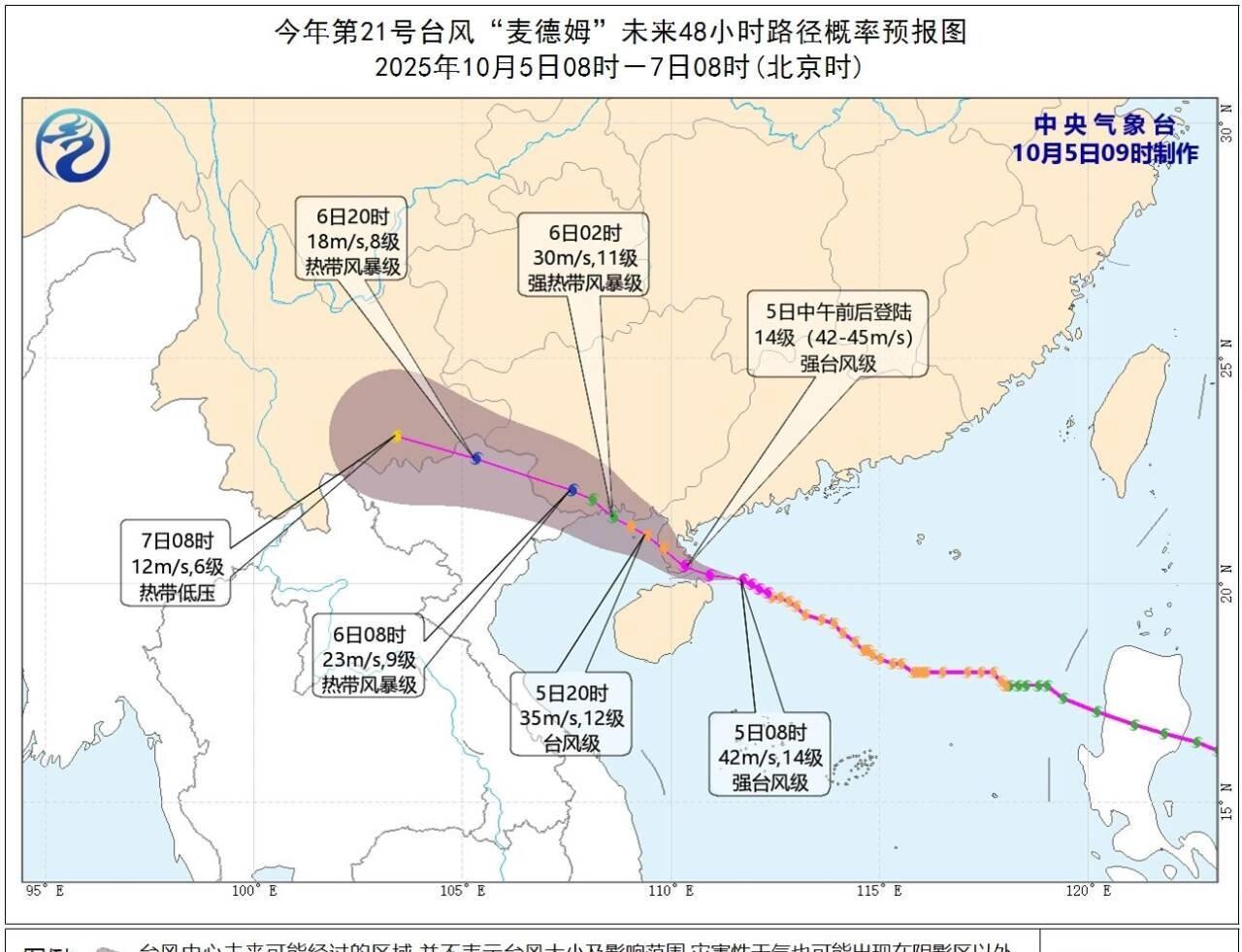 台风“麦德姆”正在做登陆前的最后增强工作,从云图来看这个台风的结构非常匀称,体积也较为庞大,给华南地区带来的风雨影响范围都会比桦加沙更广一些。在雷达图上麦德姆已经构建了一个非常清晰的风眼,这个风眼直径比雷州半岛还宽,应该是今年生成的台风里风眼最大的一个。 这个风眼其实是靠着高海温用对流强行卷出来的,整体结构还不稳固,眼内对流的清空度也很差,因此强度其实并不大,一触碰陆地大概率就会填塞消失。目前各大数值对于麦德姆的路径预报已非常统一,基本排除登陆海南东北角的可能性,将以一手台风的姿态登陆雷州半岛,不过中央气象台今早却画了一段强行西折的路径,认为其仍有可能登陆海南北部地区,个人感觉这种可能性不大。