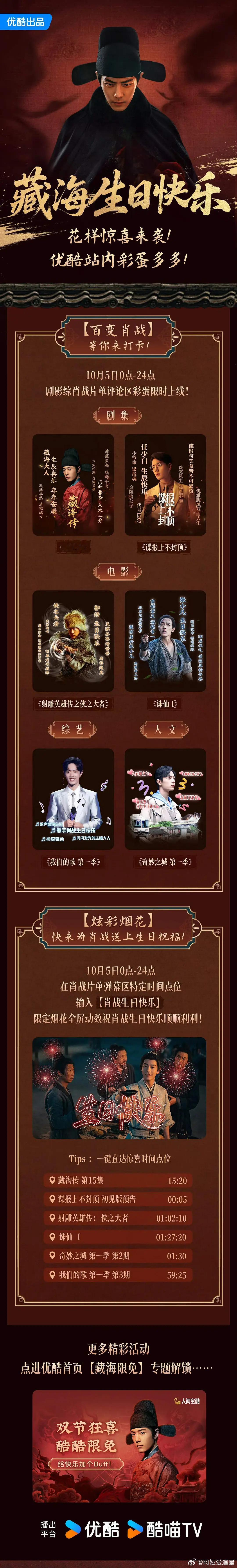 优酷对剧王肖战的态度!生日快乐烟花,独家彩蛋专区,还有肖战生日快乐主题的活动页,有心了[鼓掌][鼓掌][鼓掌]