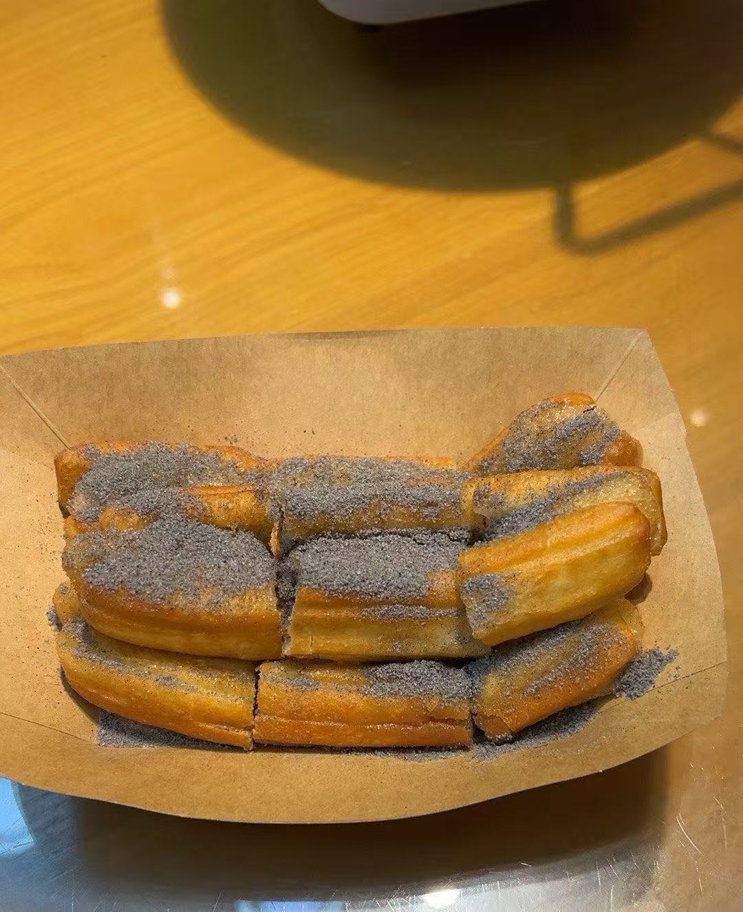 3️⃣.网红油条,现炸的油条,切段,直接搭配黑芝麻粉,吃起来香酥浓郁。