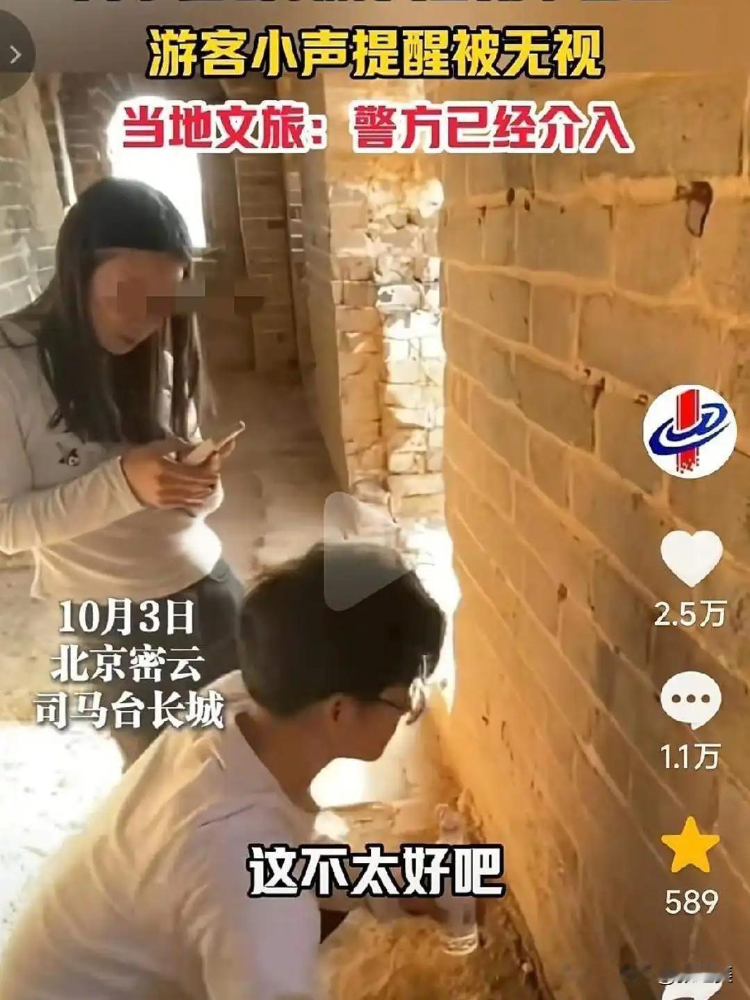 谁能想到,600多年的明代长城烽火台,竟成了某些人秀恩爱的"涂鸦板"?10月3日北京司马台长城的一幕,看得人血压直飙! 游客李女士在5号烽火楼撞见离谱一幕:26岁的满某蹲在城墙上,正用石子狠狠刻画名字,旁边21岁的刘某某举着手机笑嘻嘻拍视频,镜头里还对着刻出的爱心比耶。 "这不太好吧?"李女士小声提醒,可俩人装没听见,满某反而加快速度,刘某某还凑过去指挥着加刻图案。要知道,这司马台长城可是明洪武初年始建、戚继光整修过的全国重点文物保护单位,每一块城砖都藏着历史印记啊! 别以为没人管!景区报警后,密云警方当天就展开调查,10月4日一早就把俩人揪了出来。10月5日通报直接砸脸:行政拘留+罚款,一个都跑不了 ! 有人说至于这么严吗?看看法律就懂了:《治安管理处罚法》明明白白写着,损坏名胜古迹轻则罚款,重则拘留5到10天。之前八达岭有人刻字被拘5天,梵净山刻字更赔了12万还得公开道歉,这俩可不是首例 ! 最讽刺的是,俩人刻名字画爱心想"永结同心",结果这歪歪扭扭的字迹,反倒成了最铁的违法证据。民警顺着名字一查一个准,这波操作哪是秀恩爱,分明是自投罗网! 600年长城扛过了风雨侵蚀,却挡不住某些人的自私之手。小朋友都知道"文物不能乱涂",俩二十多岁的成年人反而不懂?罚得一点不冤! 你觉得这样的处罚够不够?遇到文物破坏该果断举报吗?评论区聊聊! 文明旅游 长城保护