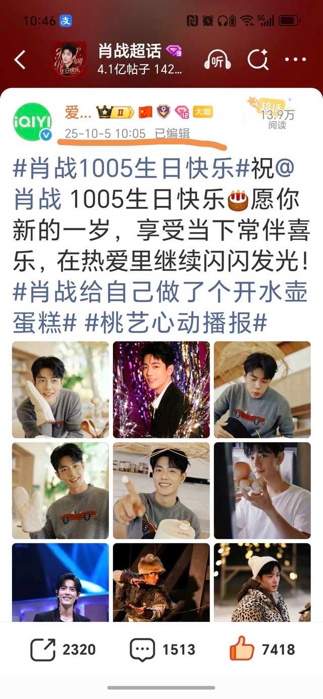 哈哈哈爱奇艺双卡点为肖战送上34岁生日祝福[流鼻血]还是很爱哈!