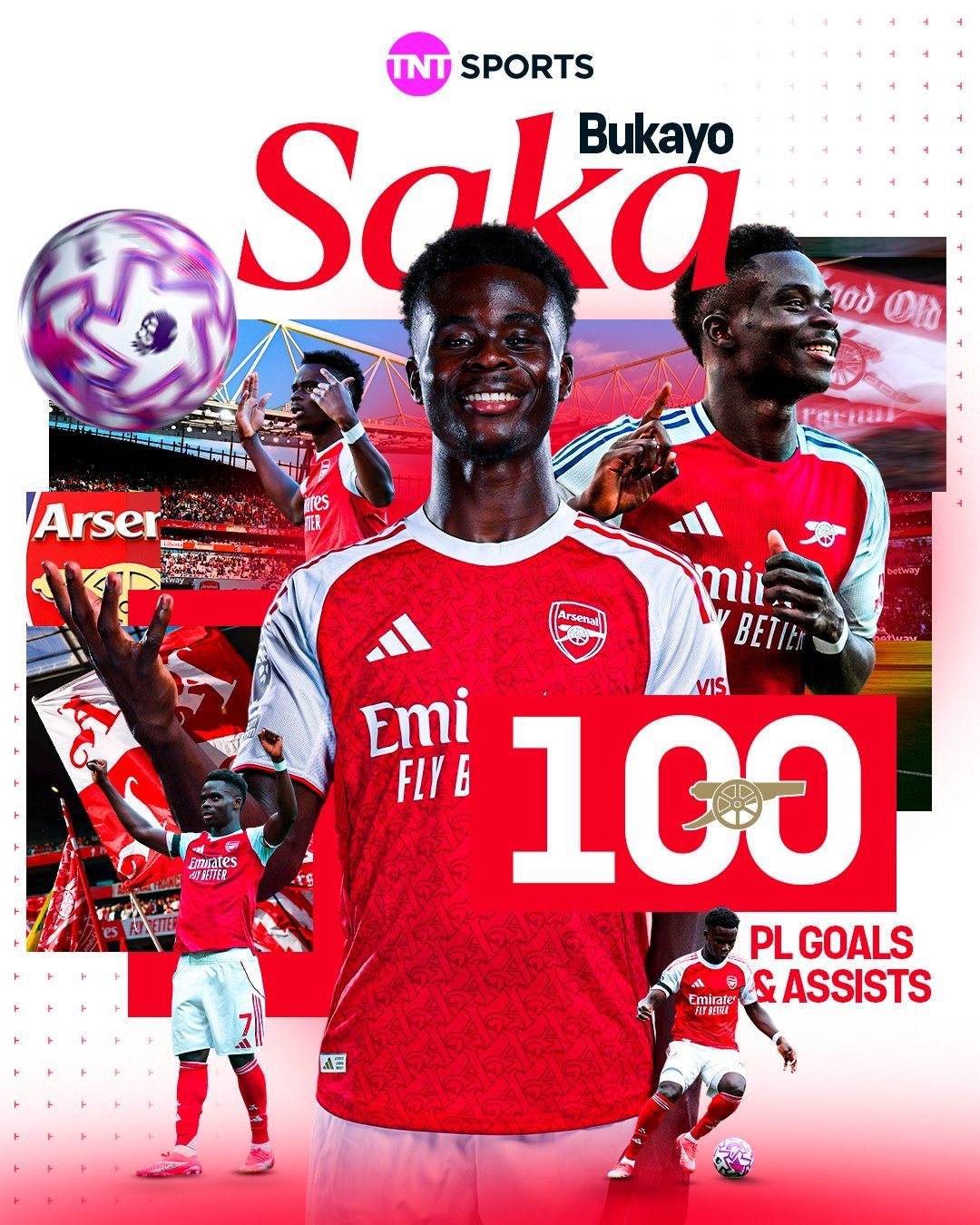 萨卡完成了第200次英超联赛出场,他是历史上达成这一里程碑第七年轻的球员(24岁29天),也是阿森纳队史上仅次于法布雷加斯(23岁242天)第二年轻球员。55球+45次助攻让他成为第八位达成百球成就的阿森纳球员,也是继伊恩·赖特(123球)和沃尔科特(108球)之后,第三位达成此成就的英格兰球员。