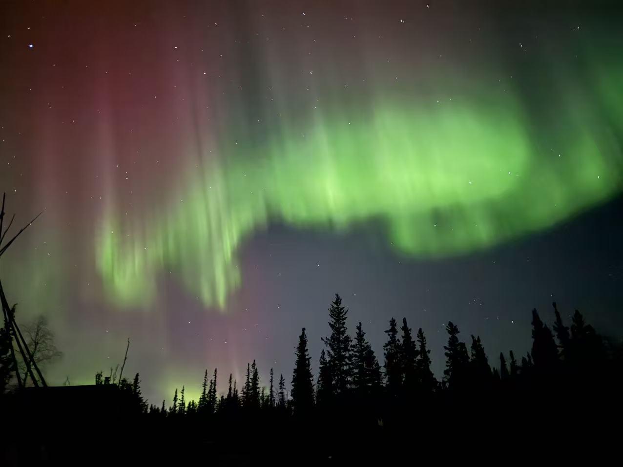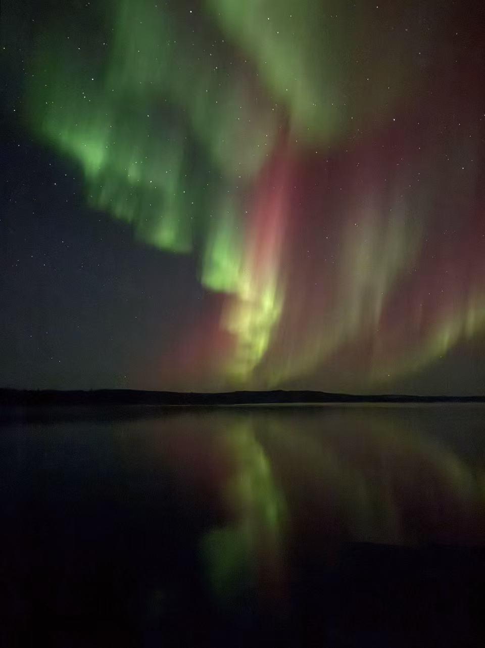 来自加拿大黄刀镇的秋日极光,第一次拍摄,手机的效果不好,应该要有脚架或更好一些的