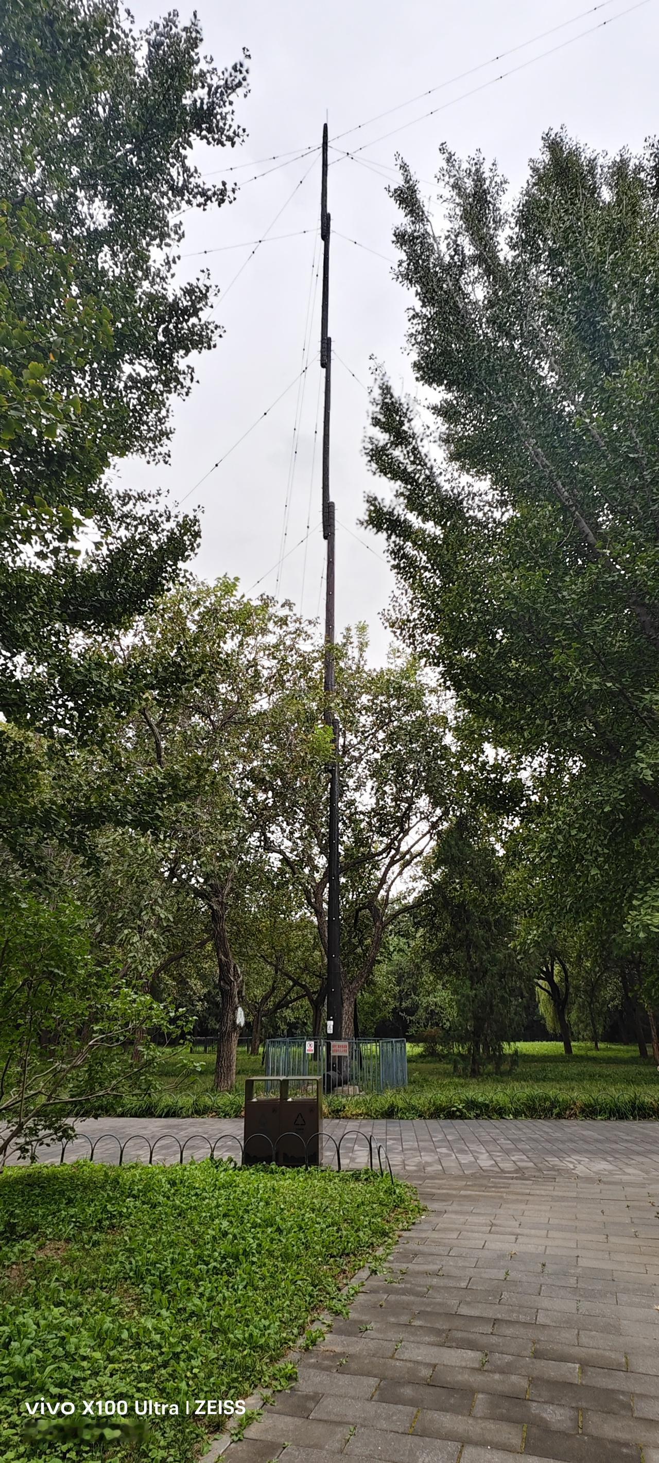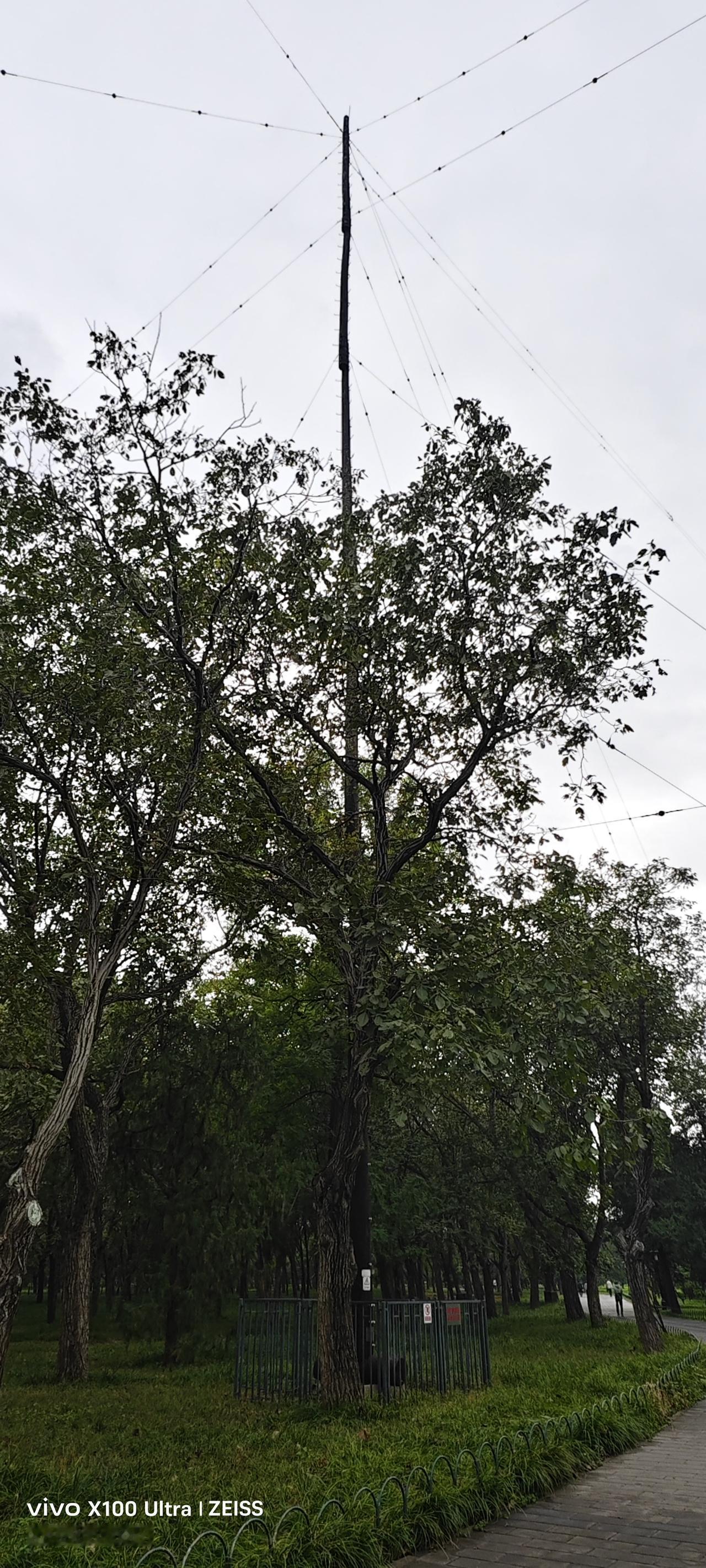 七十年代及以前这些大杆子是天坛公园的禁地,就连园林工人都禁止靠近,①是在原来的果园里,果园不让游览。②果园里面还有铁丝网,禁止员工靠近。好像是九十年代以后,大杆子废弃,后来果园也开放了。 现在那个单位占的地方可没有多大,100mX100m估计到不了。 大杆东北方向至西南方向有好几百米的距离。 那是广播电台的无线电台发射天线。今天虽然发明了电视机,发明了手机,但是世界各国都还保留了最原始的关播电台,是为了一旦发生天灾战乱等意外重大社会事件时,国家仍通过最基础的广播系统,向公众传达政府信息。 七十年代中后期,中学的同学翻墙进的果园,学校对面的果园那个位置,正好又是园工的休息室,等于是自己送上门,让人家抓。