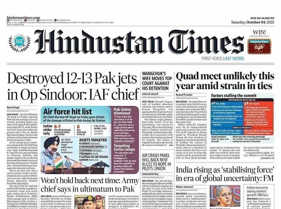 《印度斯坦报》头版的四条新闻,凸显印度被西东夹击的困境。 第二条则是印军陆军总司令的,讲的还是朱砂行动,他称,如果再来一次,绝不会再退缩,并称巴基斯坦某地是恐怖主义温床,如不管束好,巴基斯坦需要考虑在地球上是否还有它的位置。 第三条则是美日印澳会议今年不会办了,表面原因是准备时间不够,实则是受印美关系影响,并列举了50%关税、恰巴哈尔港不再赦免、H1签证门票已涨到10万美元一张。 第四条是称印度将今天的不确定世界增加了确定性,文中提到了中国内需促进了增长,印度正在做类似的事情。 还有几条有关空难等,与此文无关,就不提了。 四则新闻,看似无关联,如果反过来看,则息息相关。 印度是有一个大国梦的,它渴望与中国一样,然而它正在被逐出美国为核心的圈子,不举办美日印澳会议就是证明,其实,在这个所谓的巴库斯会议中,印度早已被边缘化,其地位还不如菲律宾,因此,印度渴望脱美入亚,但希望与中国平起平坐,然而,几个月前的那场空战却让他们抬不起了,他希望以实力找与中国相似的位置,却被它的小弟揍了,现在这小弟的国际地位都已超过它,不但是特朗普的座上宾,而且成了中东多个国家的保护伞,这样的地位,是印度历史以来没有达到的,又如与他的大哥平起平坐,所以,只好改战果,放狠话,暴露的正是他被西东夹击的困境。