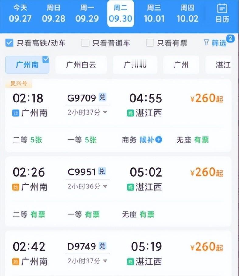 广州至湛江高铁260,大巴150,又差不了多少[捂脸哭]