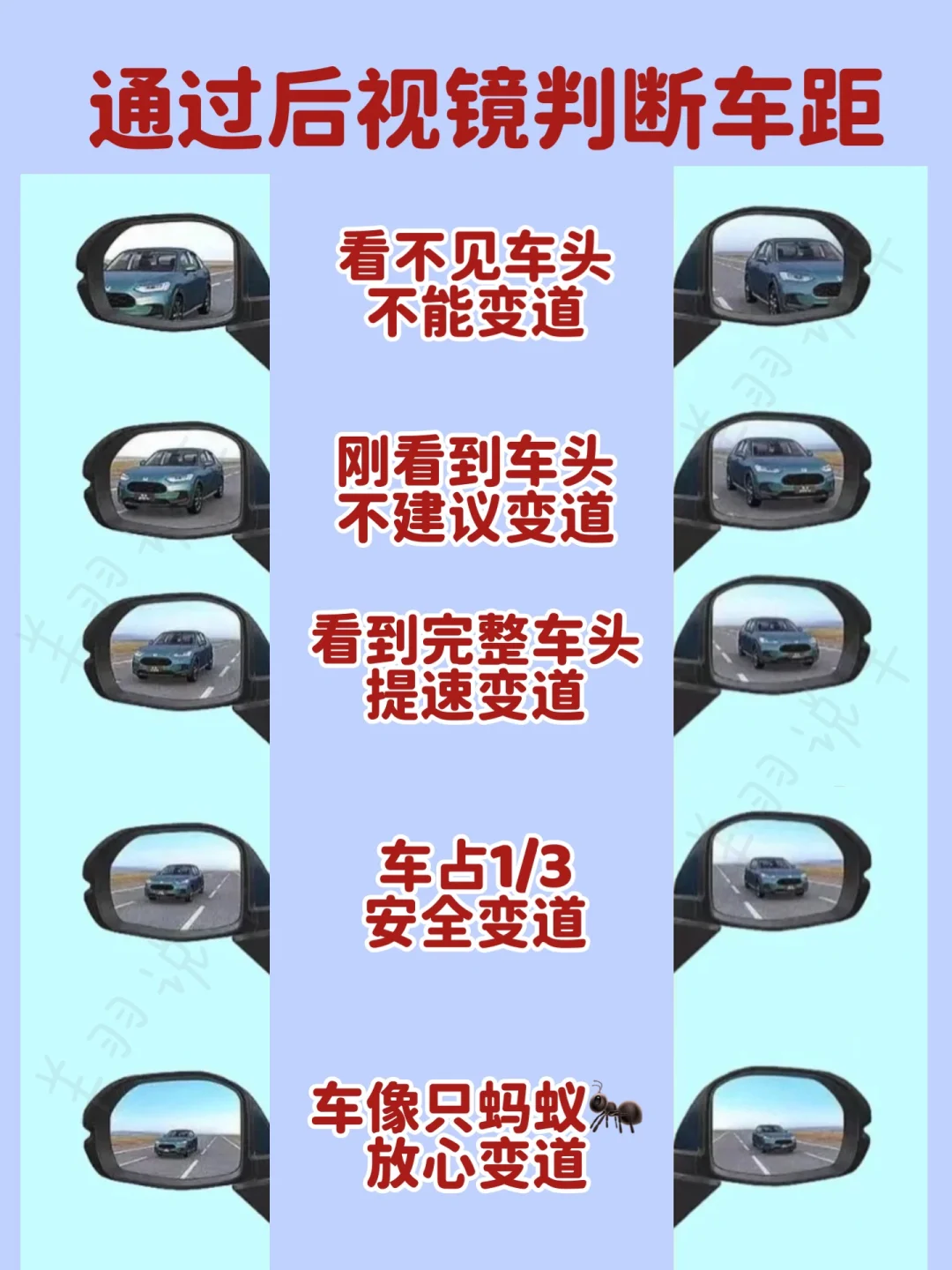 3⃣️如何通过后视镜判断后车车距,开车变道