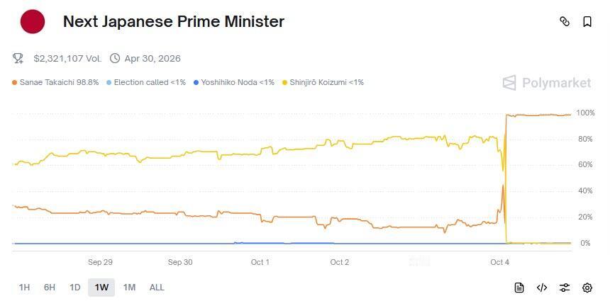 看Polymarket赔率,80%的钱押了小泉进次郎。报道的马后炮后析,说高市得到了麻生派的支持。