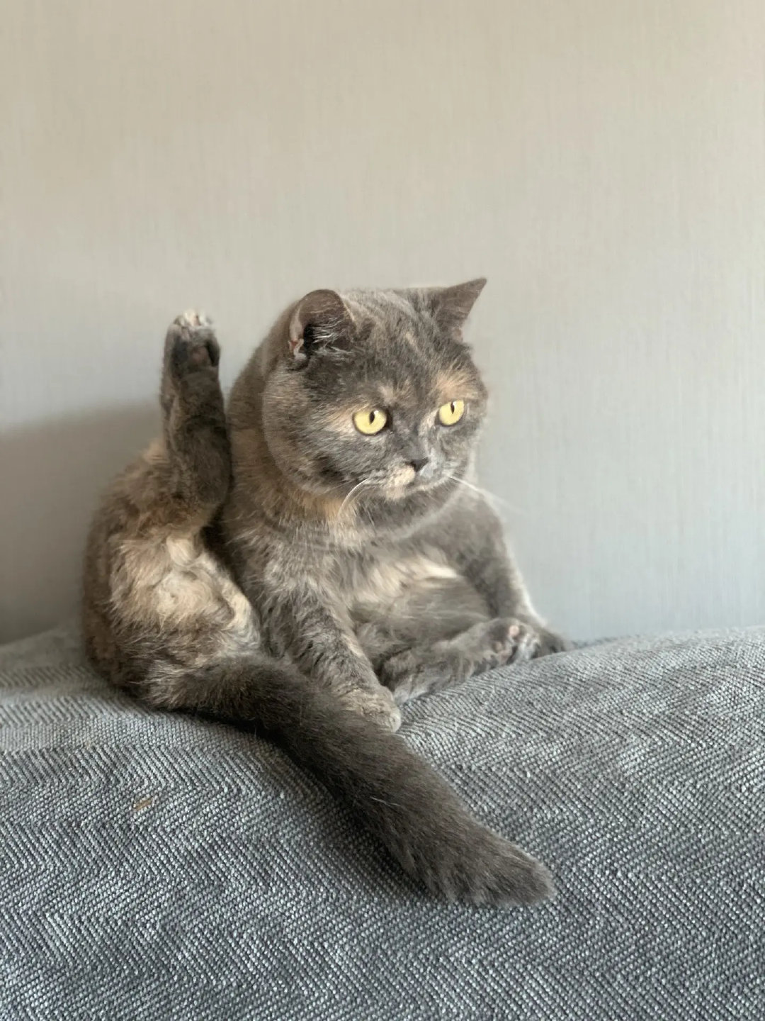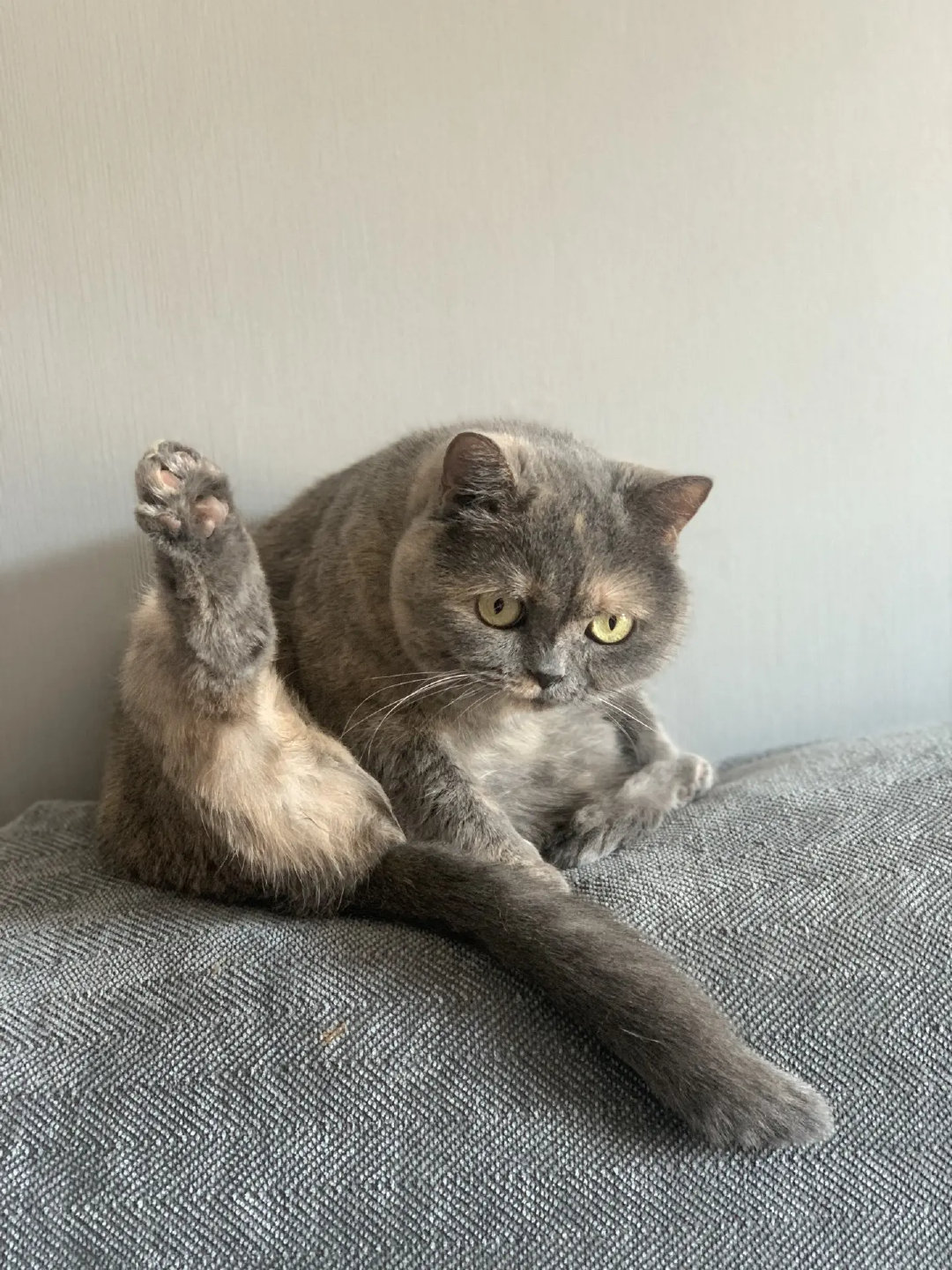 这只小猫咪也太会摆pose了吧!后腿高高翘起,一脸“朕要挠痒谁也别拦着”的严肃,配上“我先来~”的俏皮文字,简直萌到犯规~你家的猫会有什么迷惑行为吗?