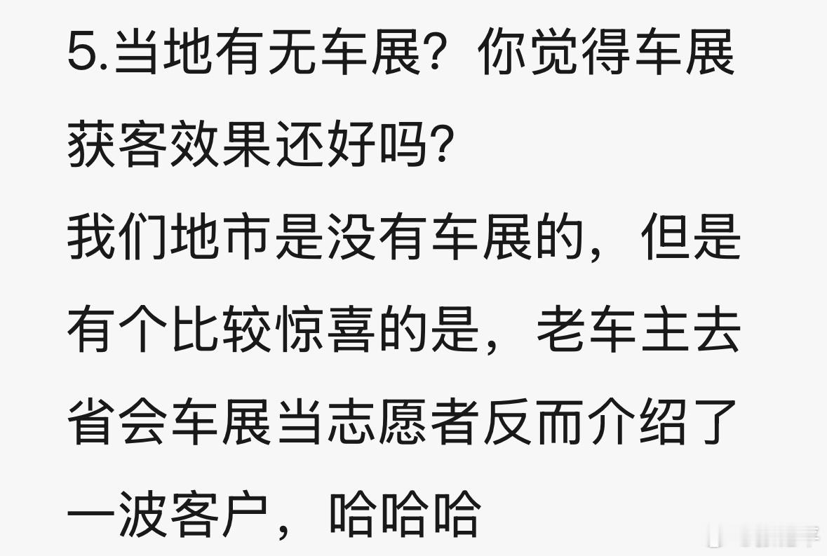 这是什么神仙老车主,跑去异地车展当志愿者,还不忘帮自己的销售介绍几个客户。[吃惊][吃惊]