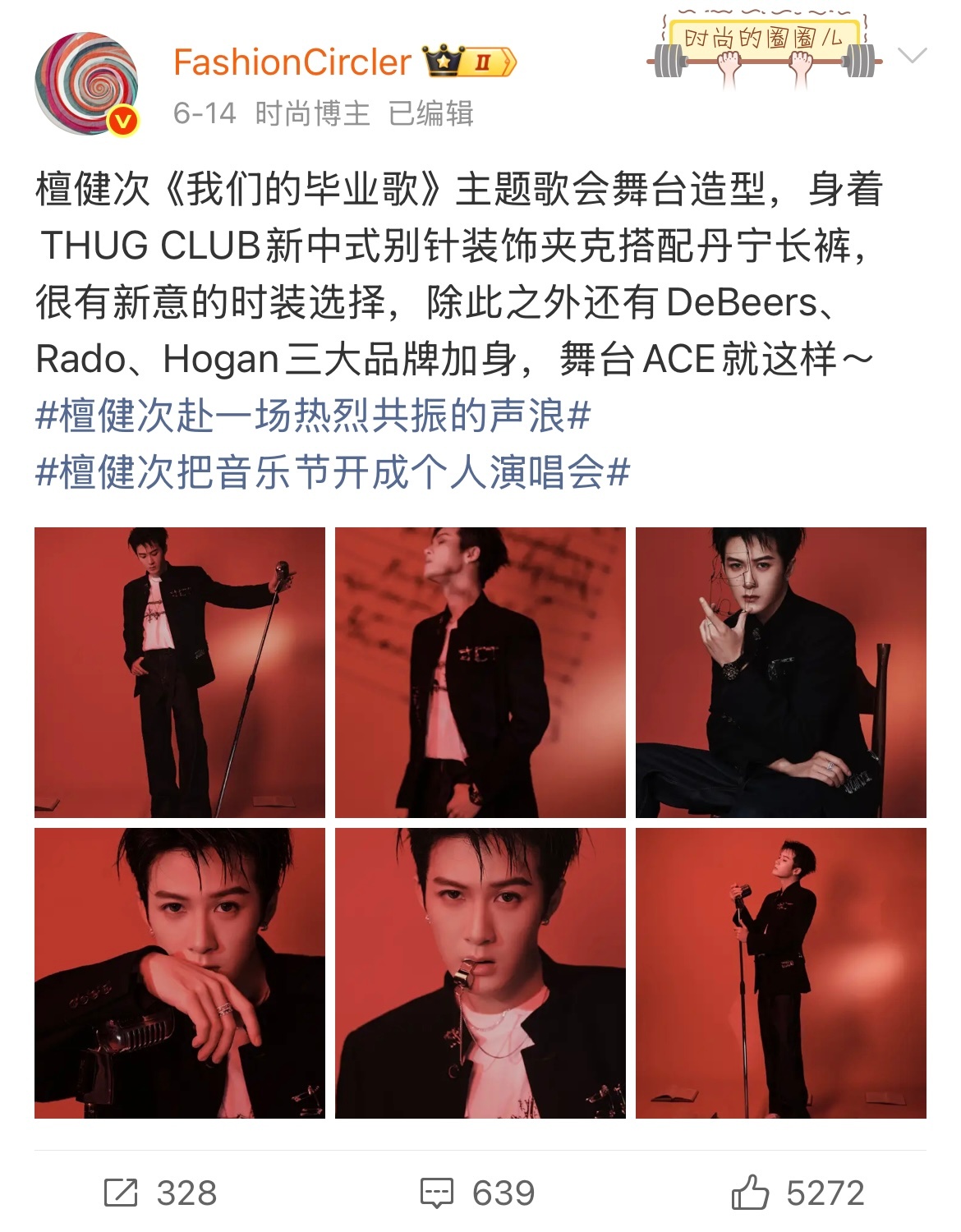 梓渝今日出席泸州银河左岸音乐节舞台造型大片,身着亮片条纹西服套装搭配衬衫,衬衫领