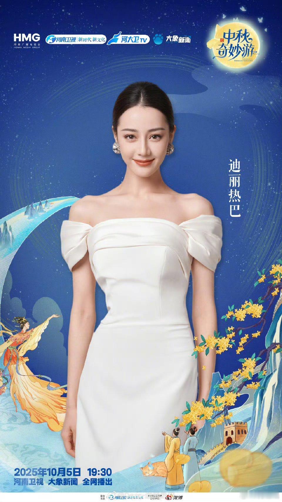 10月5日中午,发博晒出的中秋节嫦娥造型美照🎥并配文:“💛纨扇半掩芙容面,轻纱拂影舞翩跹💃。中秋限定款嘻嘻迪,和姐姐一起共赏皎月,静嗅花香🌸,把团圆的美好时光都定格在这个夜晚🌃吧~”