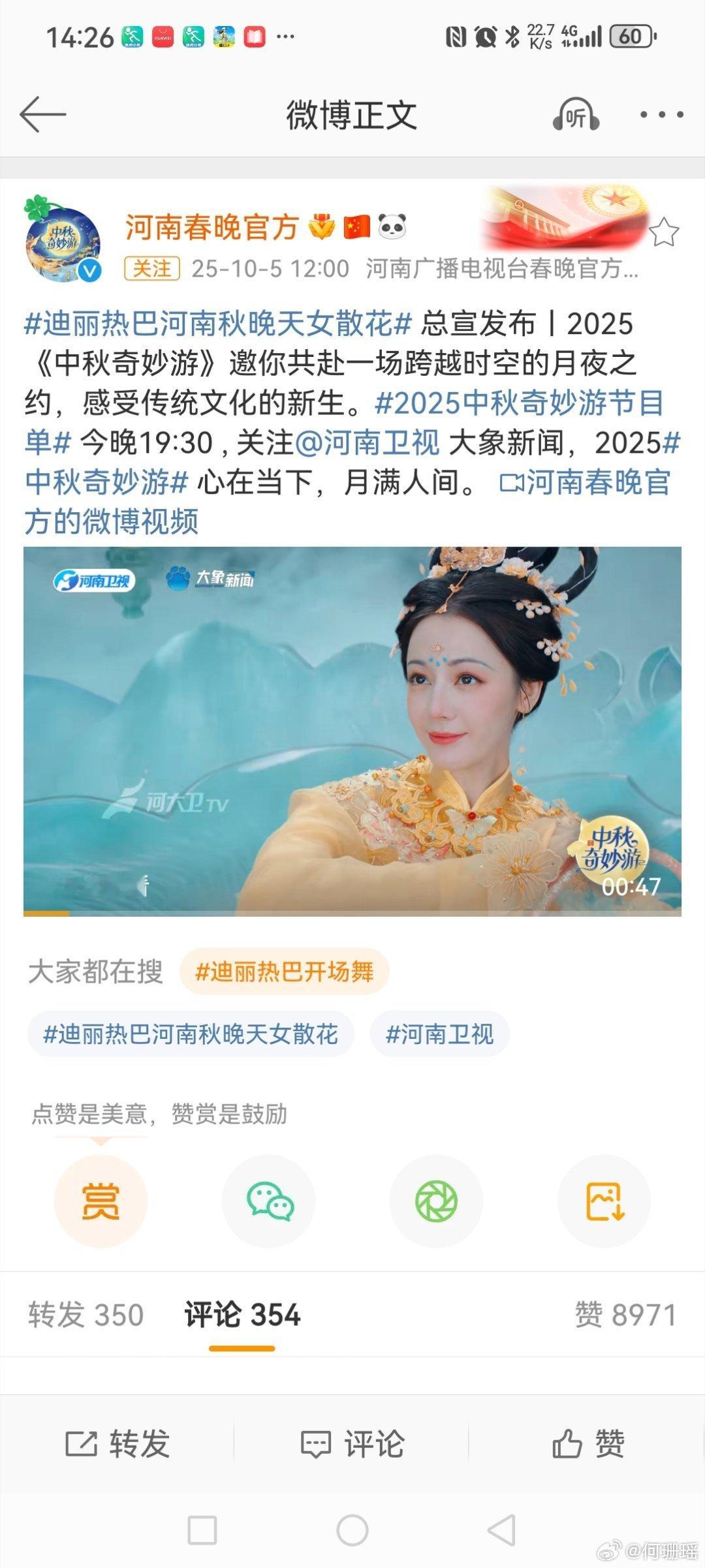 今晚19:30,就看的《中秋奇妙游》,看热巴领舞的舞蹈《天女散花》🌸,和美丽的嫦娥不期而遇![爱慕][爱慕][爱慕][抱抱][抱抱][抱抱][锦鲤附体][锦鲤附体][锦鲤附体]