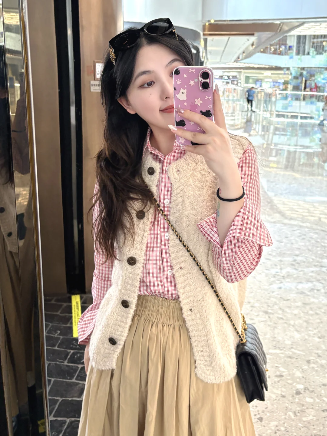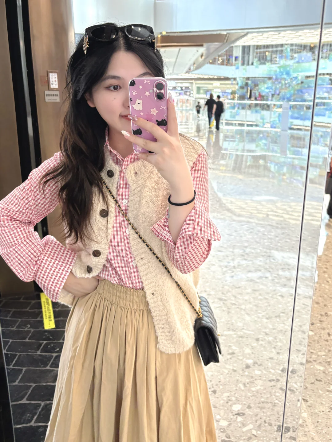 🧁秋天的红格子衬衫➕小马甲~绝绝子