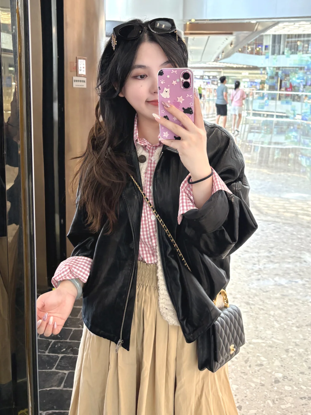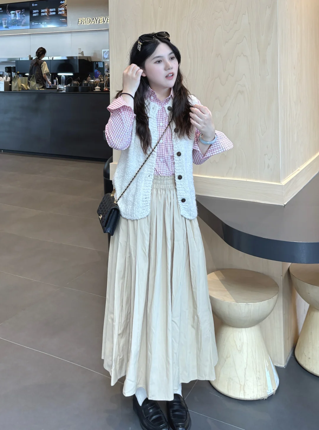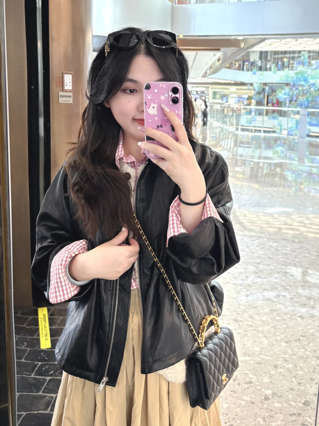 早秋穿衬衫 更爱叠穿个小马甲显层次感 半裙全松紧的好好穿 卡其色也是秋色! 再冷一点就可以套一件宽松的小皮衣~