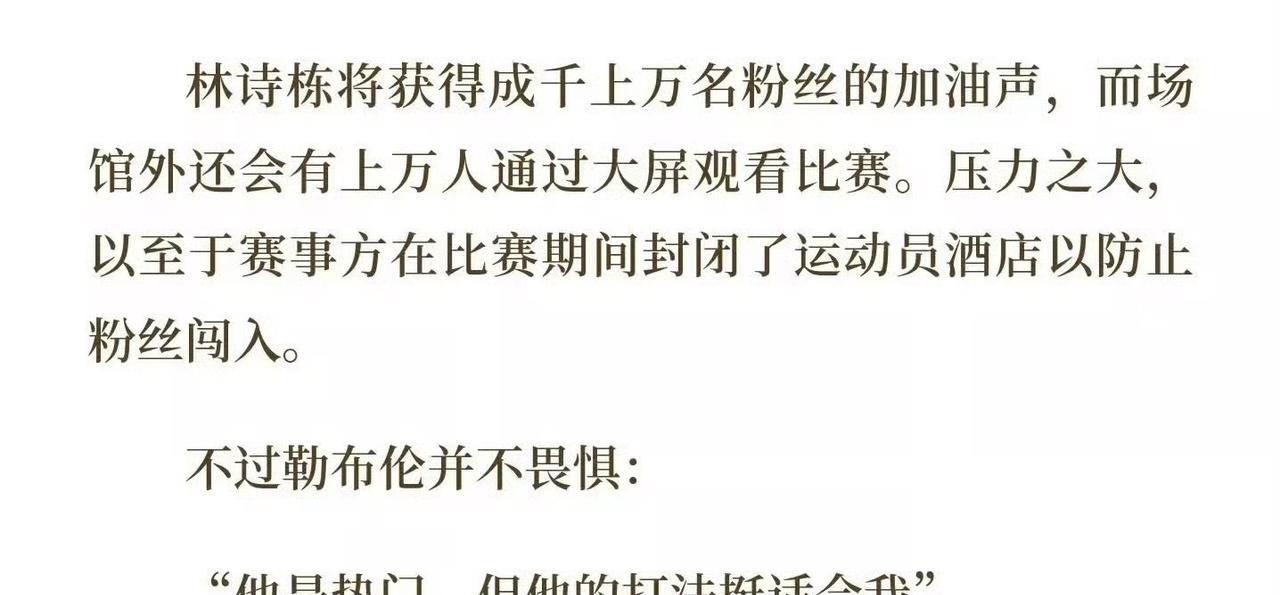 林诗栋未来想要翻过小勒布伦这座高山也难了:小布打出了大主人的自信。 【他赢不了我。】 这次中国大满贯,恰逢国庆期间,外卡如雪花片般洒下中国选手,中国乒乓球队全力以赴要在家门口前打出风采。 现场山呼海啸的加油声,四面楚歌的签位表,都对外协选手造成了一定的障碍。 但是小勒布伦照样杀入了四强,在力克国乒“奇兵”陈俊菘后,小勒布伦把整个乒乓球赛场打成了图书馆。 小勒布伦在4:2大胜后,做了丝滑的庆祝姿势:我真是在中国的主场,浇灭了他们的热情。 他赛后接受了法国媒体的专访,表示:“这也很有趣,我对阵的是一名中国选手,所以不出所料,这是中国的主场,自然有很多人给他加油。场子里只有5、6个法国人,而对方却有1万个中国观众,给他喝彩。” 【所以这场比赛,是我献给我的法国亲友的。】 黑马陈俊菘因决胜局逆转张本智和,一战成名,但是他却没把小勒布伦挑下马来。 小勒布伦对着1万个支持陈俊菘的中国观众,直接来了场酣畅淋漓地致敬“寒王”。 小勒布伦来回摩擦手臂,仿佛要取暖,寓意自己“让全场冷却”。 法国紫薇星小勒布伦发现自己的半决赛选手是林诗栋之时,信心十足: 【他是热门,但他的打法很适合我。】 正常情况下,外协劲敌在抽到国乒绝对主力时,会有畏难情绪:我要折在这里了! 但是对于小勒布伦来说,尽管世界排名第二的国乒现役绝对主力林诗栋是这场比赛的大热门,这里会有成千上万粉丝为他加油欢呼,并且场馆外也会有上万人给他加油支持他。 但是他意气风发,因为他在这场半决赛以前,他已经两连胜林诗栋了。就算林诗栋摧枯拉朽一度登顶世界排名第一,但是林诗栋从未完成对他的复仇。 他们的最后一次见面比分停留在0:4,小勒布伦大获全胜。 他对林诗栋有种自上而下的审视心态:他的打法很适合我。 所以,这次比赛后,小勒布伦表示他其实心态很轻松,打到后来势如破竹,【我也说不上为什么,我就是很确信我能进决赛。我相信我自己。】 其实输同一个人太多次,不仅对输的一方是种潜移默化的驯化,对于胜的一方,也是种心态的大补。 【遇到你,是我的好签。】要打破恶性循环,一定要翻身一次。