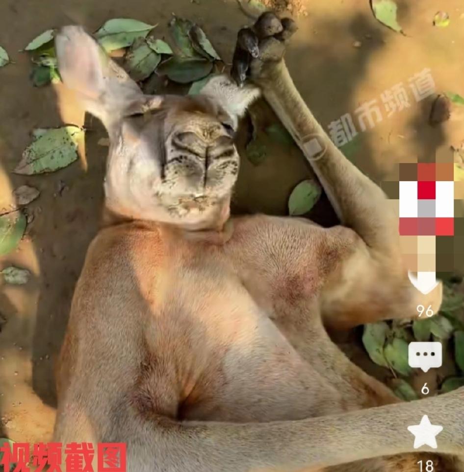 山东有动物园袋鼠正在午休。 看到它此刻也是睡得真香,还很舒坦,似乎它在做着美梦