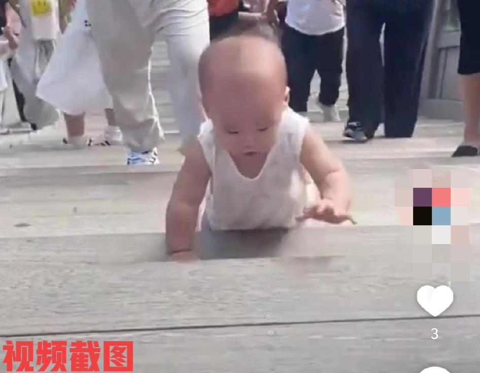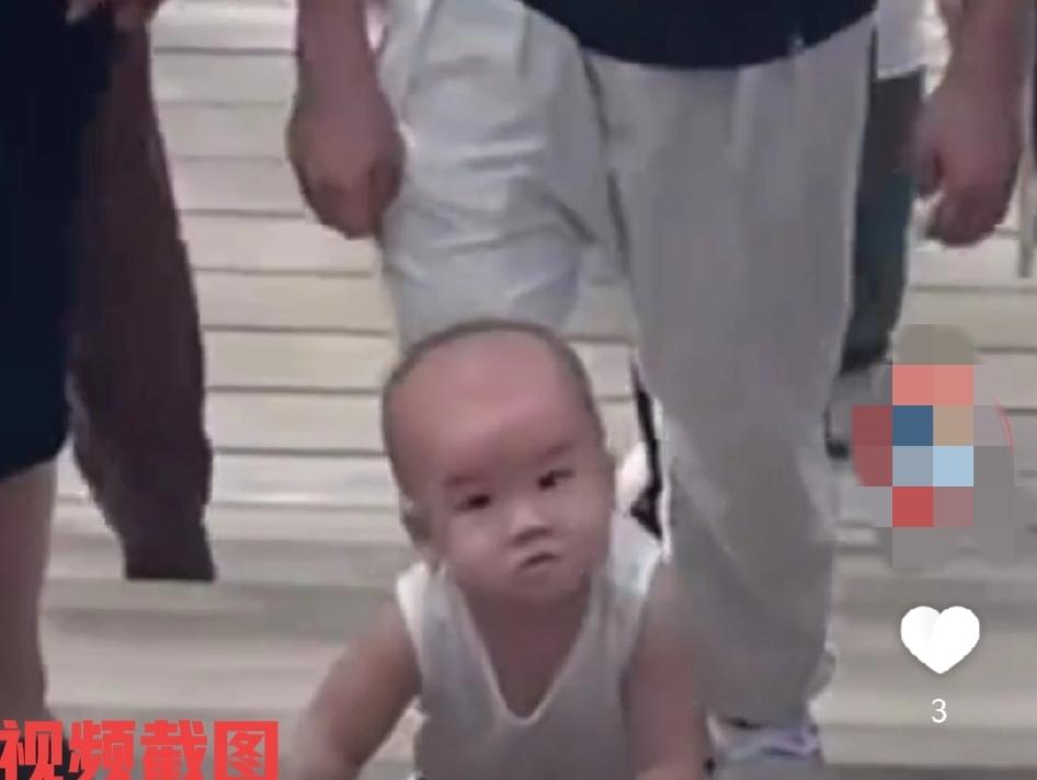 江西庐山夫妻俩带孩子去东林大佛。 此刻由台阶而上,夫妻两人竟然把怀中的孩子放下