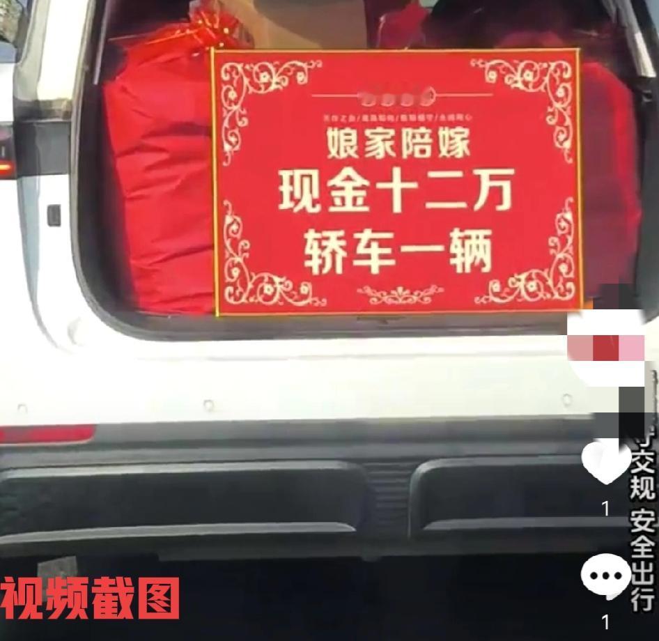 国庆中秋高速上堵车。 有人看到路上堵车时,前车打开了后备箱,内有写娘家陪嫁,现