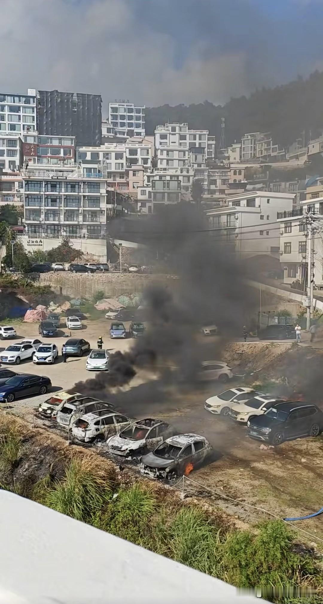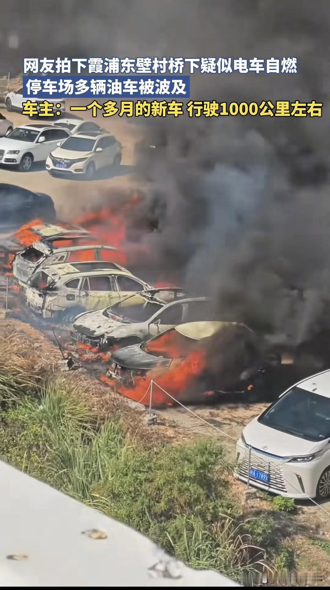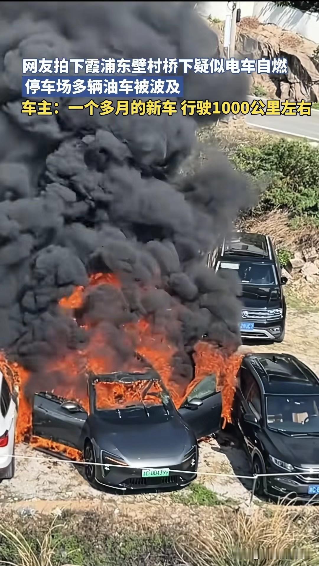 福建霞浦东壁村突发车辆自燃!多辆汽车被烧得黢黑,车主心疼到肝颤 2025年10月5日,福建霞浦东壁村桥下停车场,一辆电车突然“发火”,黑烟冲天,还把旁边好几辆油车都给连累了! 听车主说,这辆电车才买一个多月,开了也就1000公里左右,拍下并通知了消防官兵赶到现场扑救,目前具体起火原因还在调查,车主赶到现场看见眼前的情况,怕要两眼一昏。
