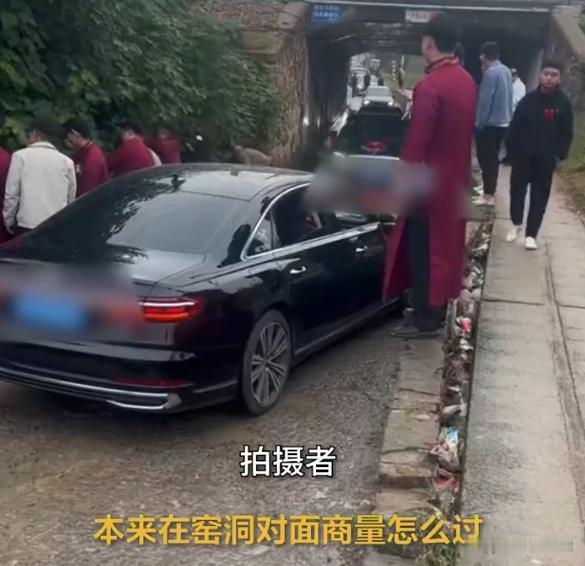 山东菏泽这事儿太逗了。两家婚车在过涵洞的小路上碰头,谁都不肯让一步,就这么堵上了