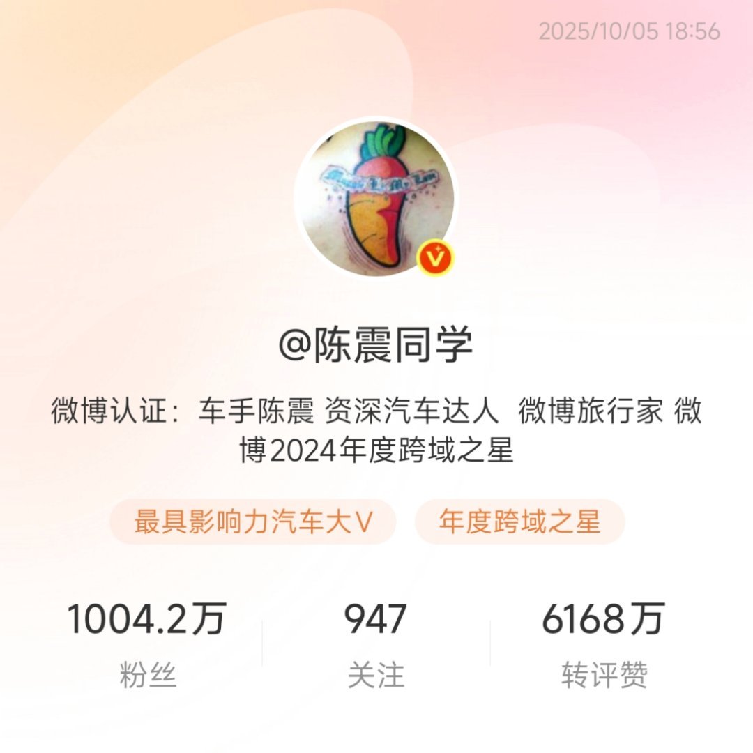 从顶流的角度讲,陈震其实属于早年多舛大器晚成,所以比东北雨姐防风险意识更强;从车评人角度讲,相比于翔翔陈震收入很高,不至于把事情做的太难看。